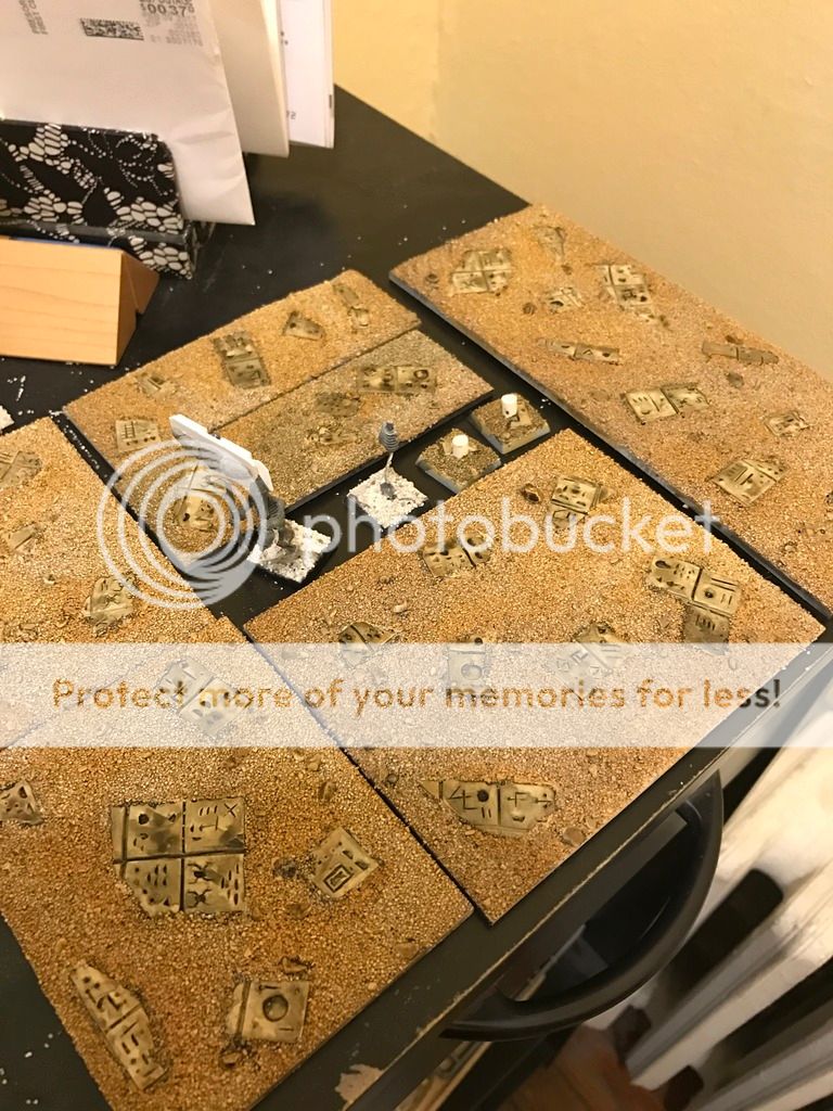 Also started work on a Phariot (Pharaoh on Chariot of dead Skeletons) Next to the large base is more mock up work on the