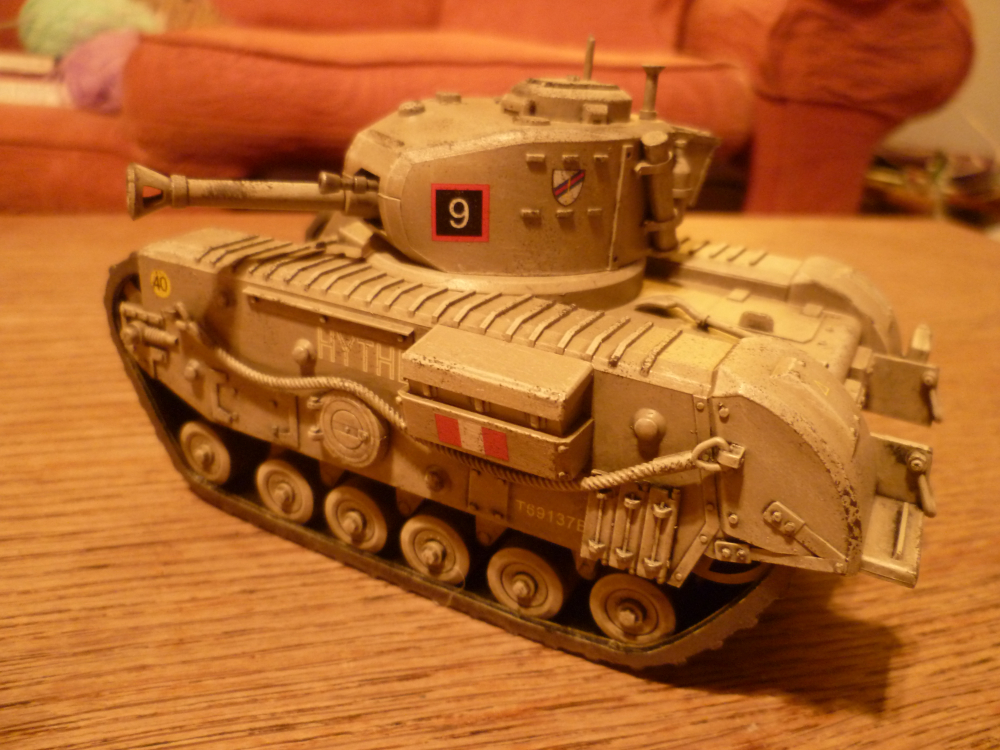A heavy tank, to be used as a Leman Russ. Almost identical in dimensions. This is a Meng Toon Tank of a Churchill. The deformation of the dimensions made it ideal for me as it brought it more in line with 40k vehicles (real world vehicles tend to be longer and thinner). It also made the tank less recognisable than would have been the case with a properly proportioned Churchill. I was very impressed with this kit. It was pretty inexpensive, went together very easily and looks great imo. The only down side is that the tracks are rubber, so paint flaking may be a problem. Okay so far though