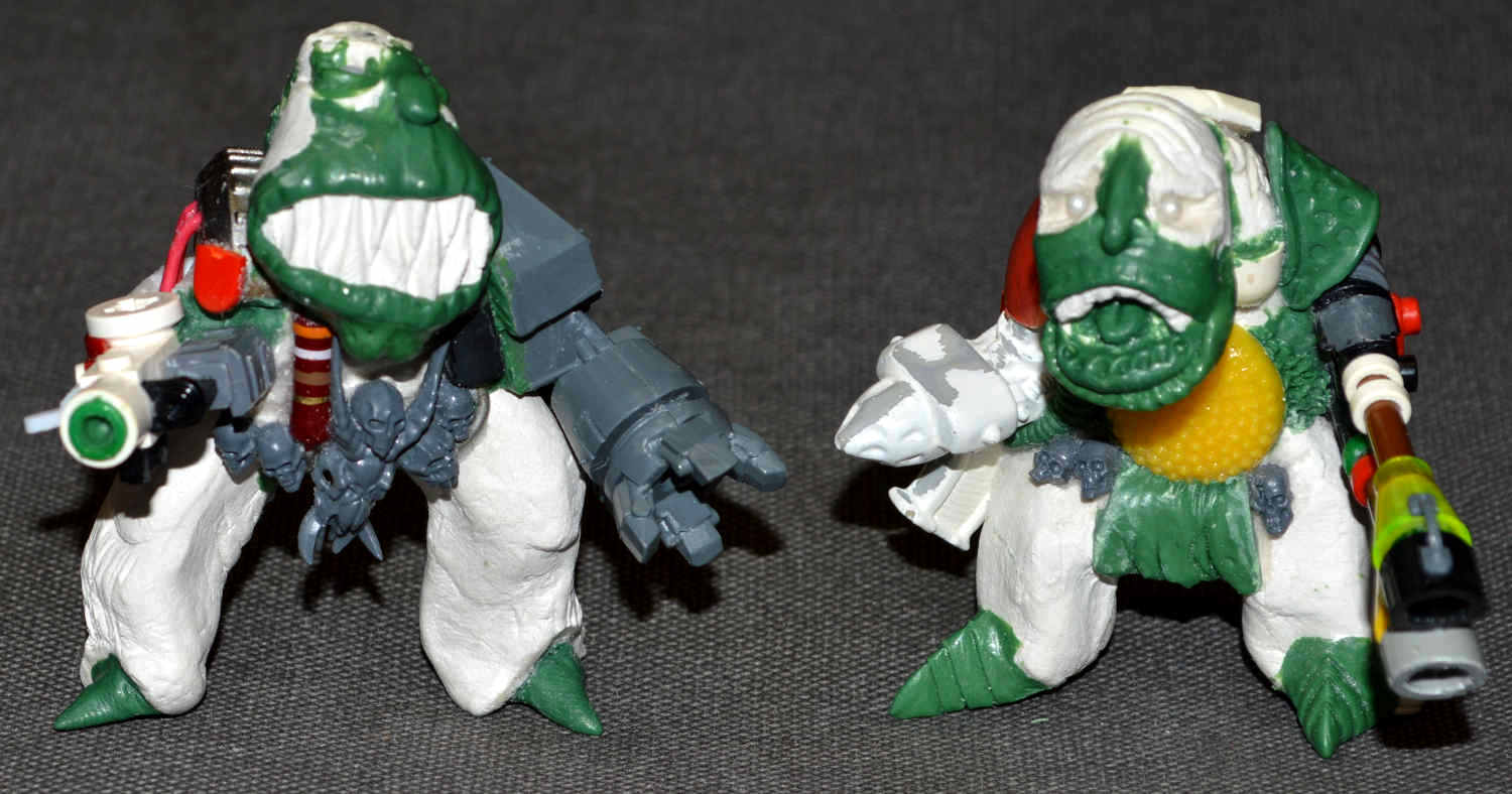 I find it both impressive and bizarre how drastic a change your painting has on the feel of these models. The sculpts feel almost childish with their cartoonish proportions. But once you have painted them, they come out much more creepy and grotesque. Great stuff.