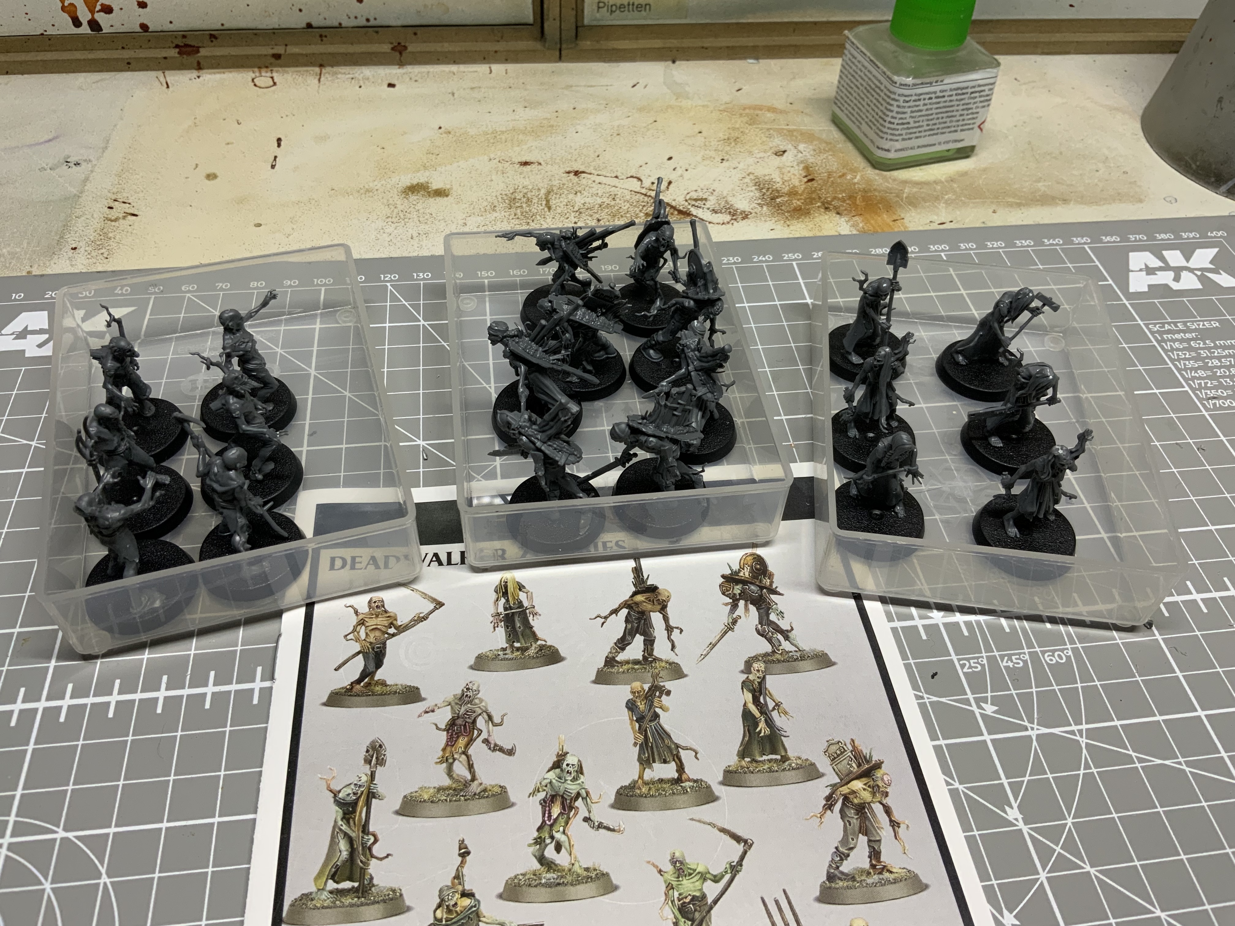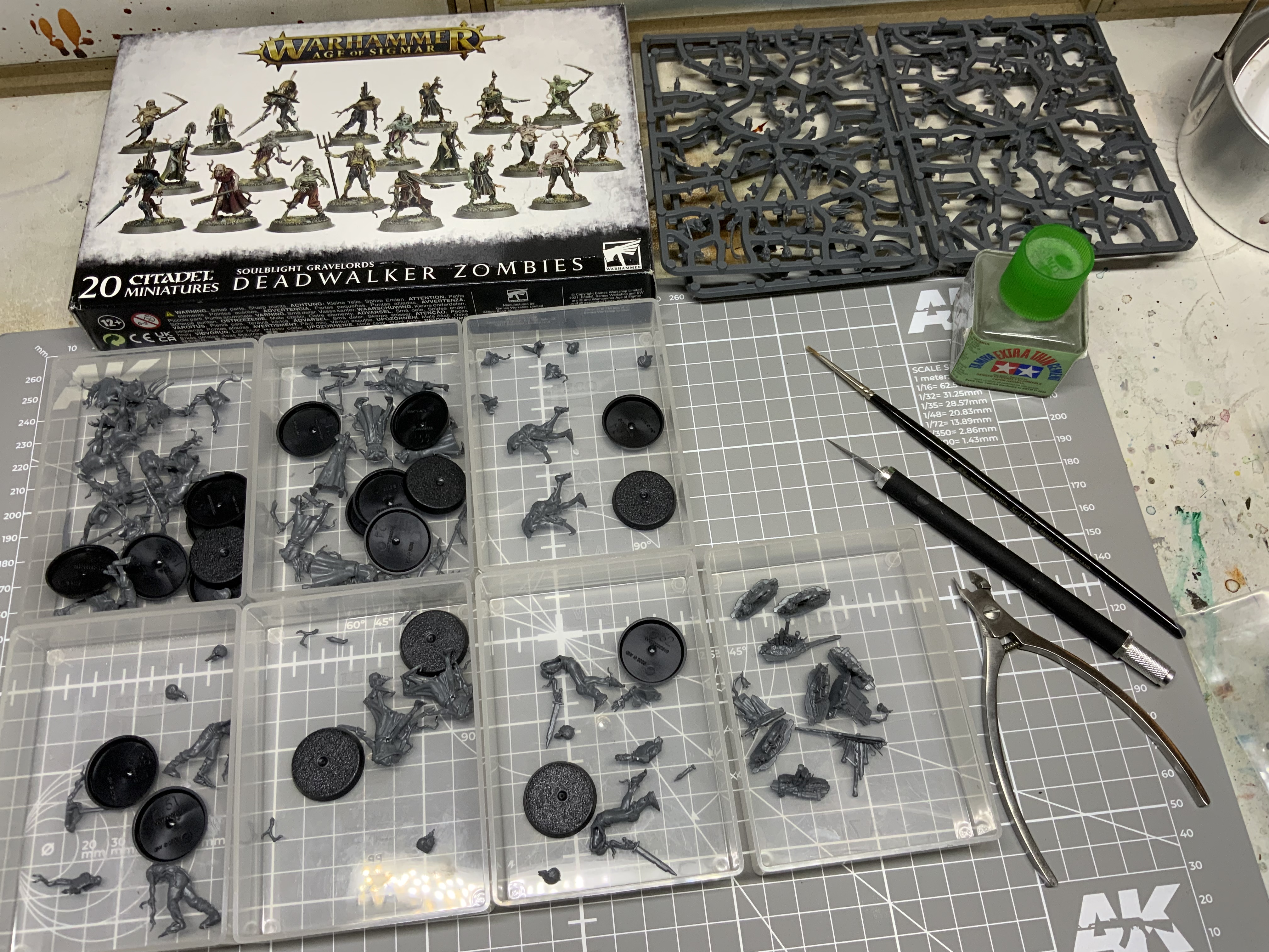 A while ago, I noticed that I don‘t have any Zombies in my collection and after a bit of research, went for the Deadwalker Zombies. Here they are, snipped and ready for assembly.