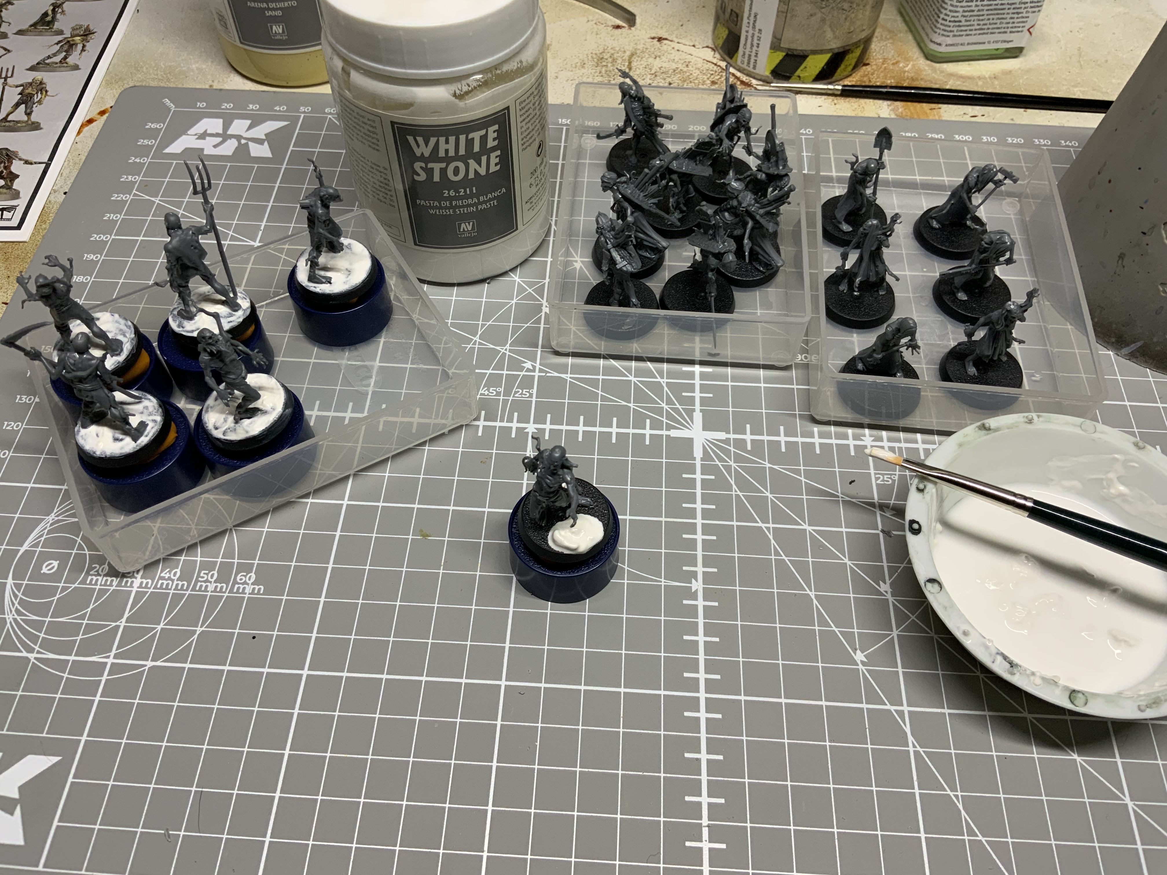 I dissolved some Vallejo White Stone paste in water and made a rocky ground for bases.