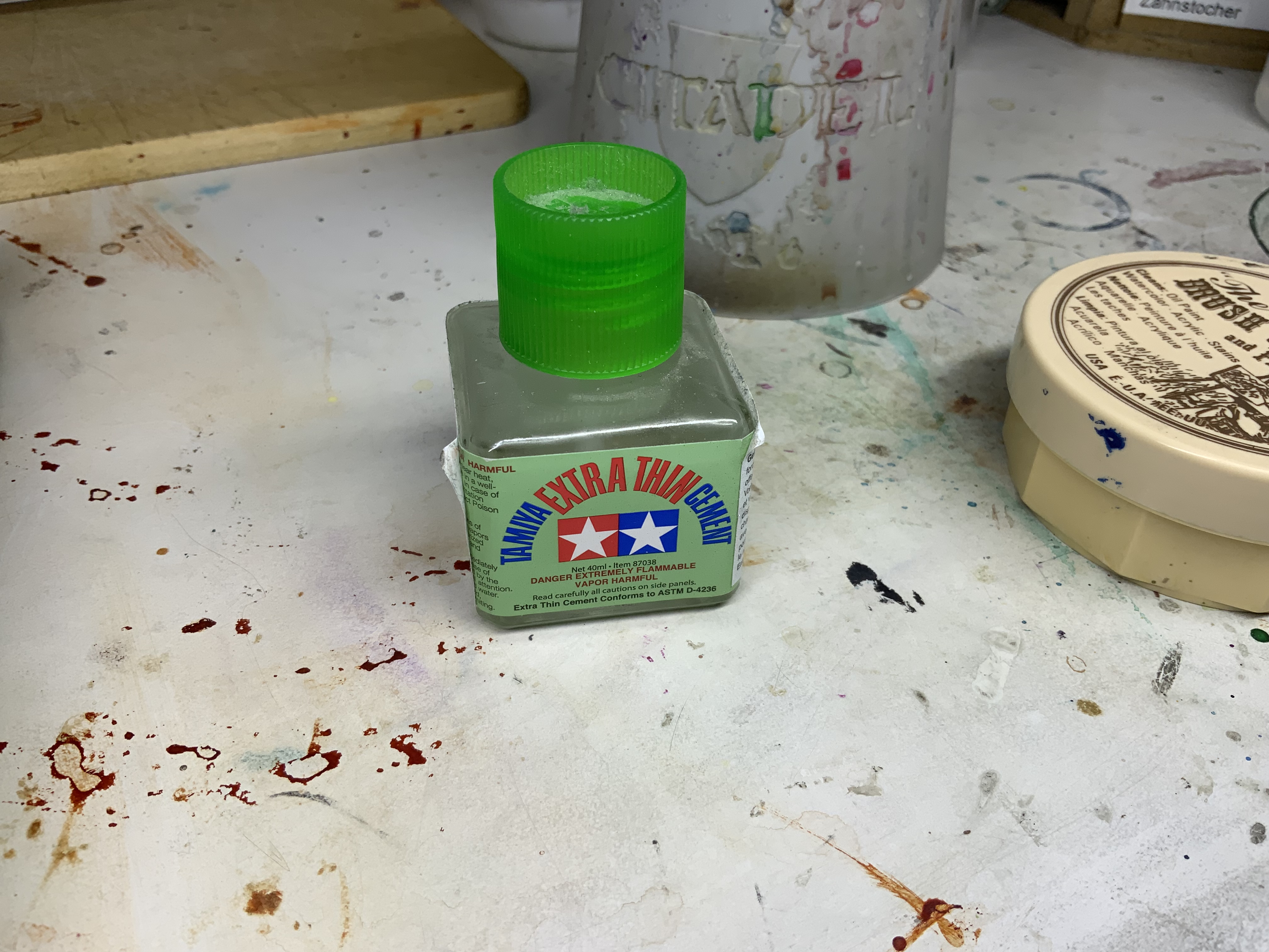 After four years of service, I‘ve emptied my trusty plastic cement. Although there‘s a new one, I‘ve glued so many minis with this bottle, it‘s a bit sad.