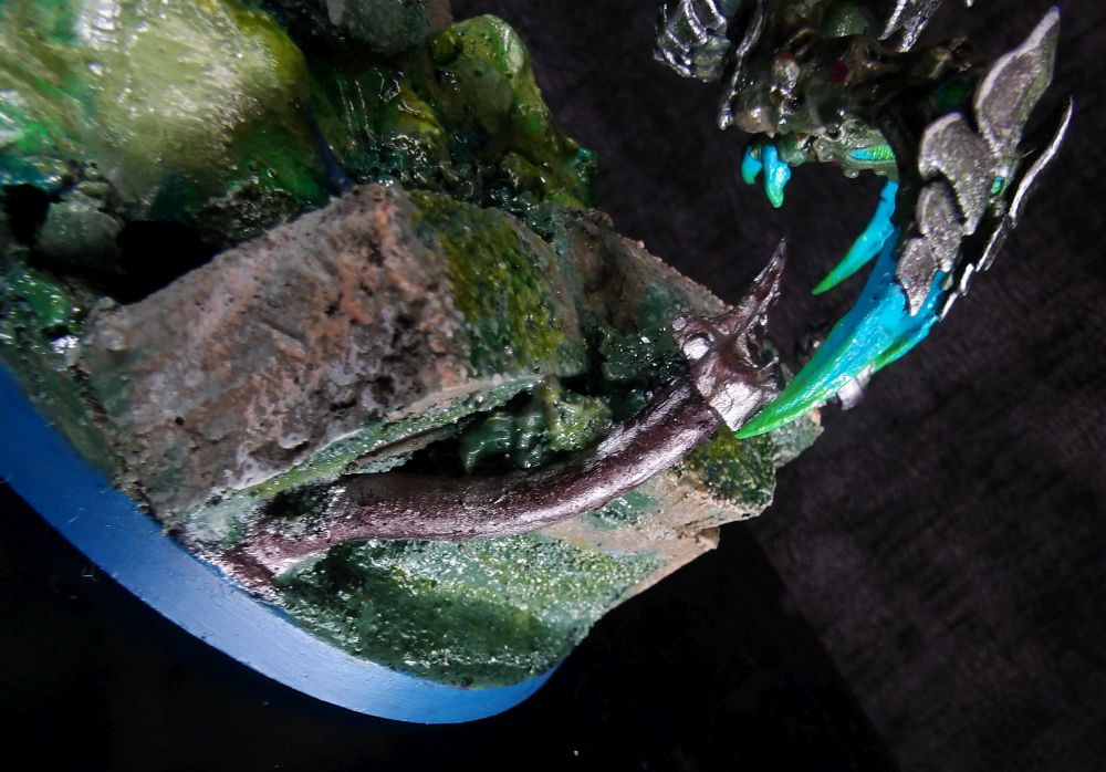 The base was made with a lot of styrofoam (best basing material imho), a few spare nails, terrarium sand, modeling stones(mini) and ofcourse hobby glue, which all in all the paint of didn't take as long as I anticipated (only one day).