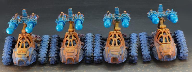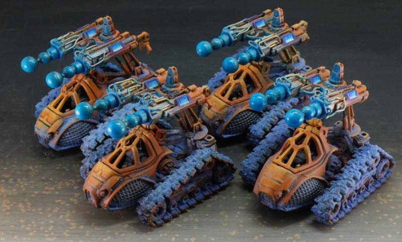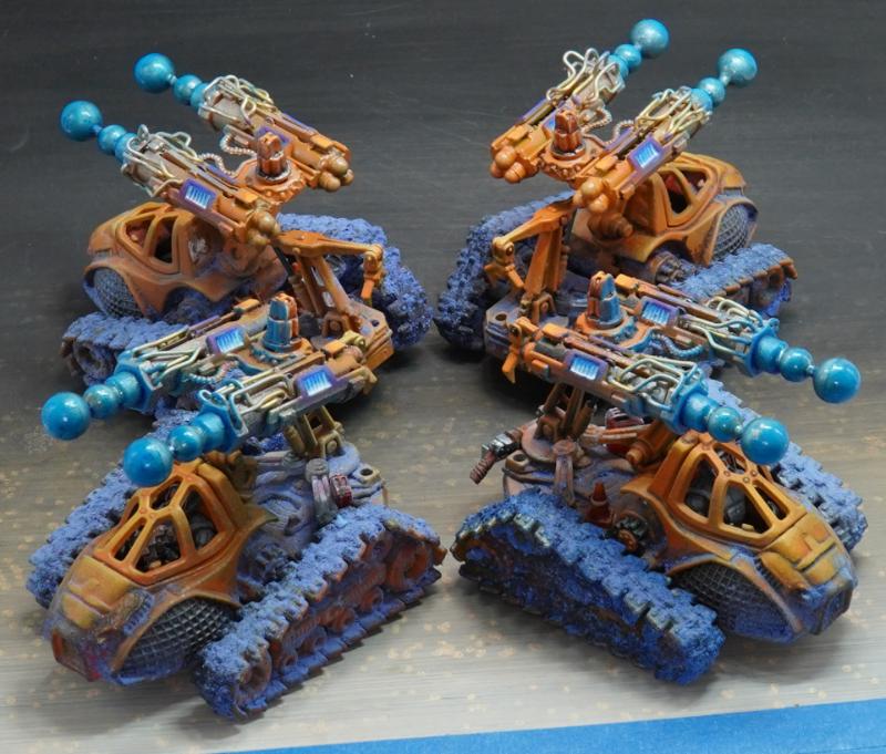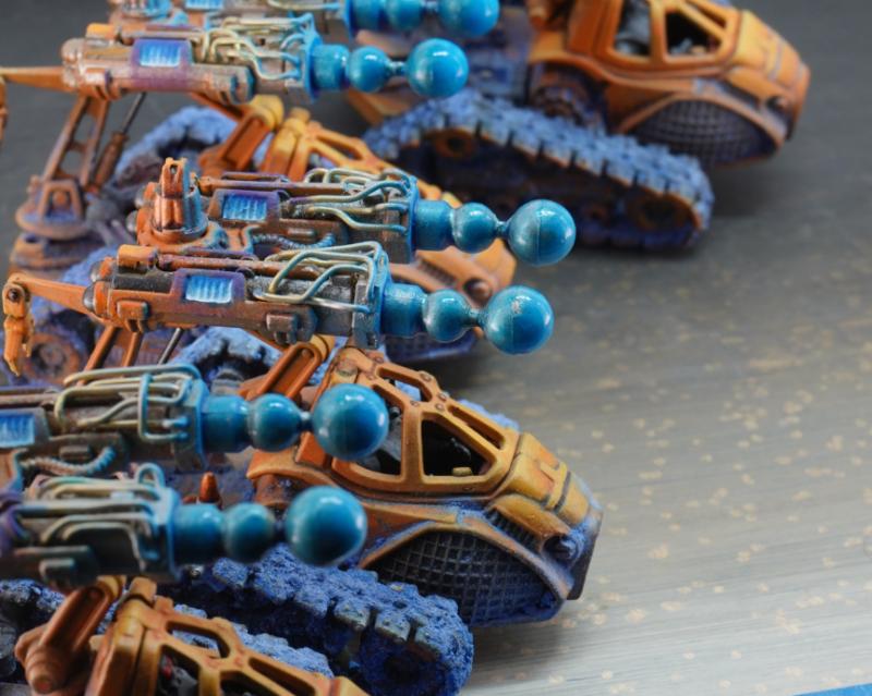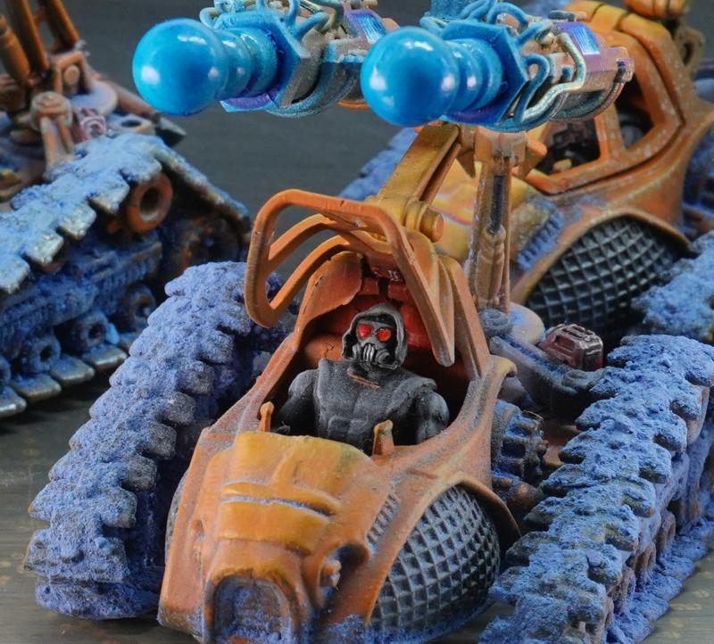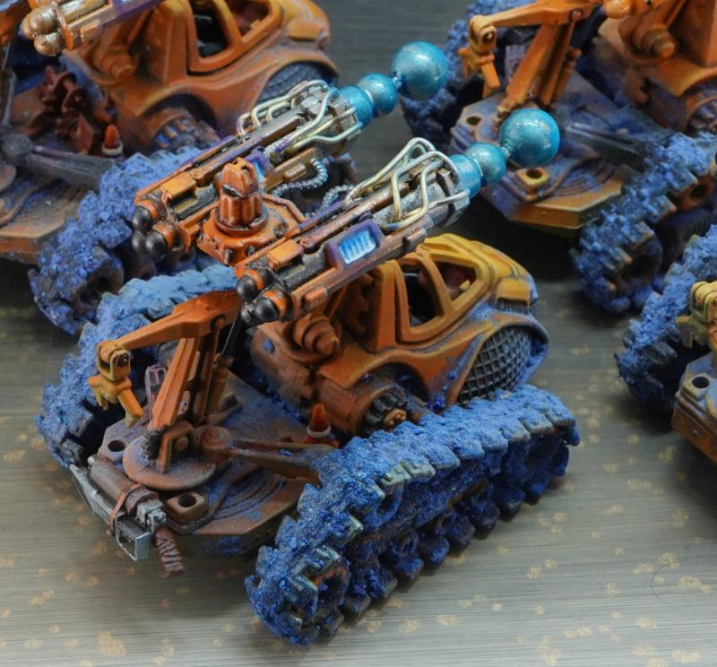 Mate, these are brilliant! I have one of the tehnolog MBTs myself and had a bit of trouble with the soft plastic but you're making them look aces here. Love the accent lights/plasma and the base texture coming up onto the mini with the weathering.