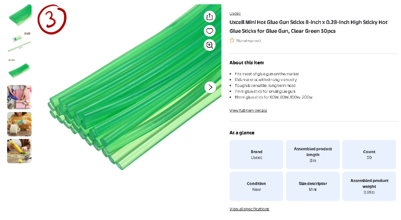 Lesson learned - It is very hard to find matching color for the glue sticks, and opaque greens are not the best for larger models.