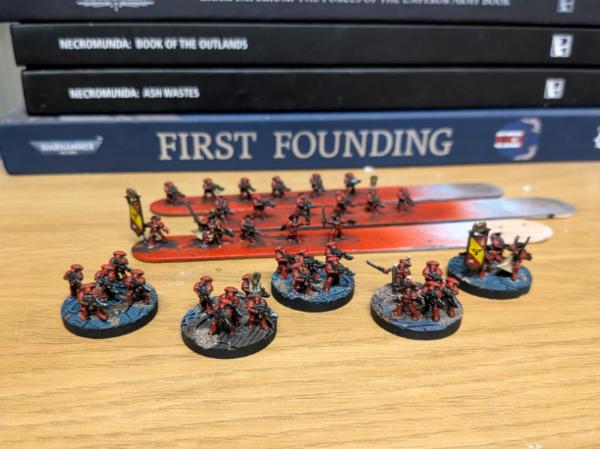 5 bases and a bunch of spares for knight/titan bases and to mix into the Auxilia command when I get round to them!
