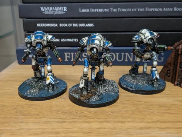Need to get a paint to add some bronze/copper detailing on the weapons. Then just a few little bits to tidy up, decals and streaking grime time! Soon hopefully, then back to more Nids before I tackle the rest of the Taranis Mechanicum Knights...