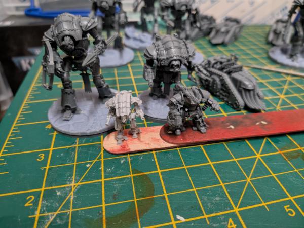 Whilst the Taranis Knights and Kraken Nids are my two main projects for the moment, the current painting challenge seemed like a good opportunity to get these guys finished up (they go well with the Knights anyhow!), a Dire Wolf and Reaver which will be for Legio Solaria. Not entirely sure why I abandoned these part way through (literally half way through painting the dire wolf), but hopefully can get the mojo to finish these off now! Reaver needs barrels drilled before getting undercoated, intending to get it to the same stage as the Dire Wolf and finish the final steps in tandem.
