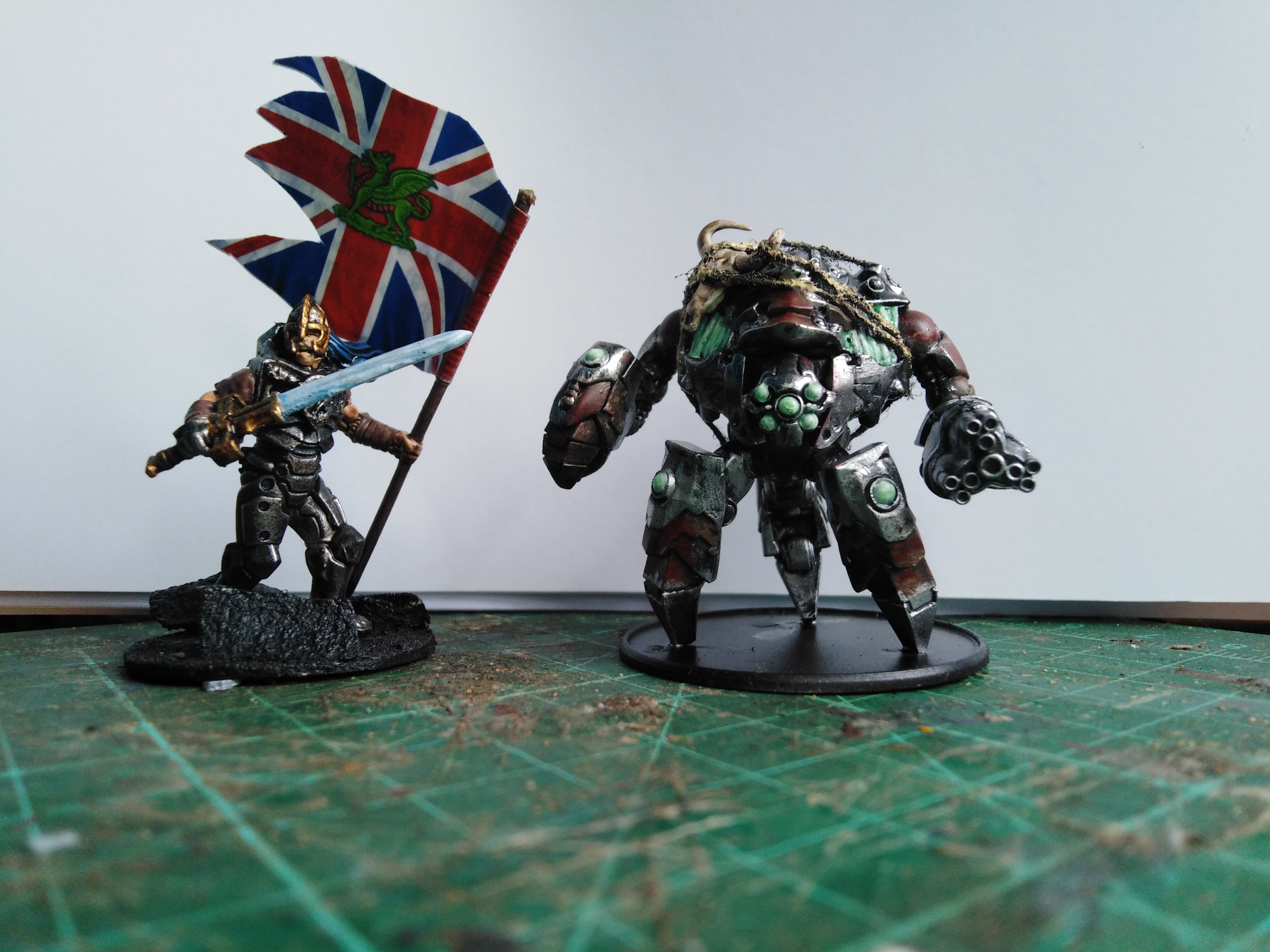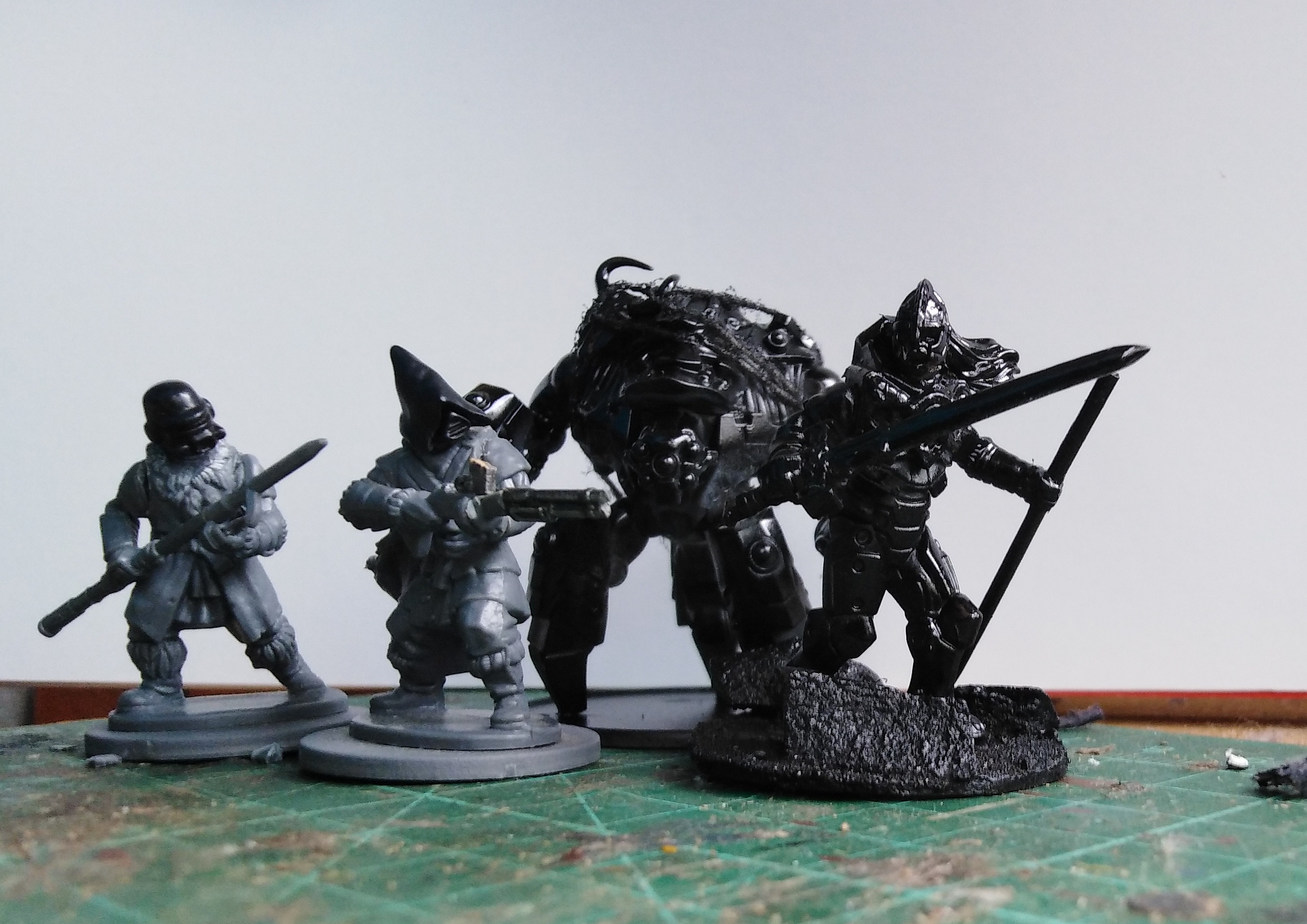 Yup, two of them are Frostgrave/Stargrave kitbashes. The robot thing is a Ghar Battlesuit from Beyond the Gates of Antares, and the other bloke is an Algoryn troops' body (also Gates of Antares), with some Frostgrave arms and a MESBG Eomer head.