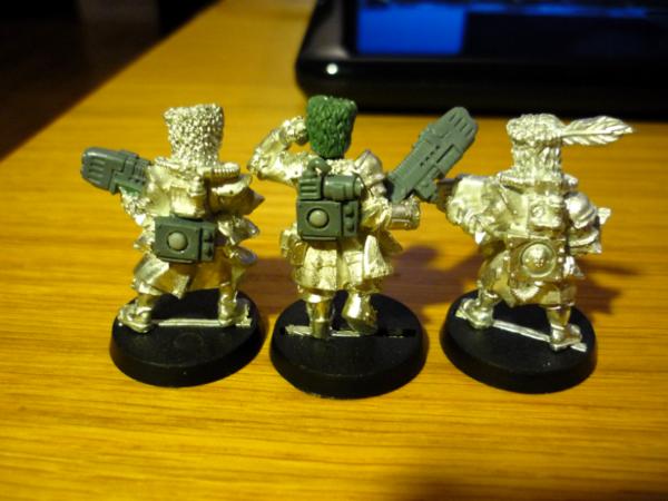 Not so much to report, but I've put in a decent amount of work on the Plasma Vets. I'm pretty happy with how their backpacks turned out! I was modeling them after the stock plasma gunner's pack, though they are nowhere near identical. Still a lot of GS to do, and I'd like to add a cable from the gun to the pack on the middle vet.