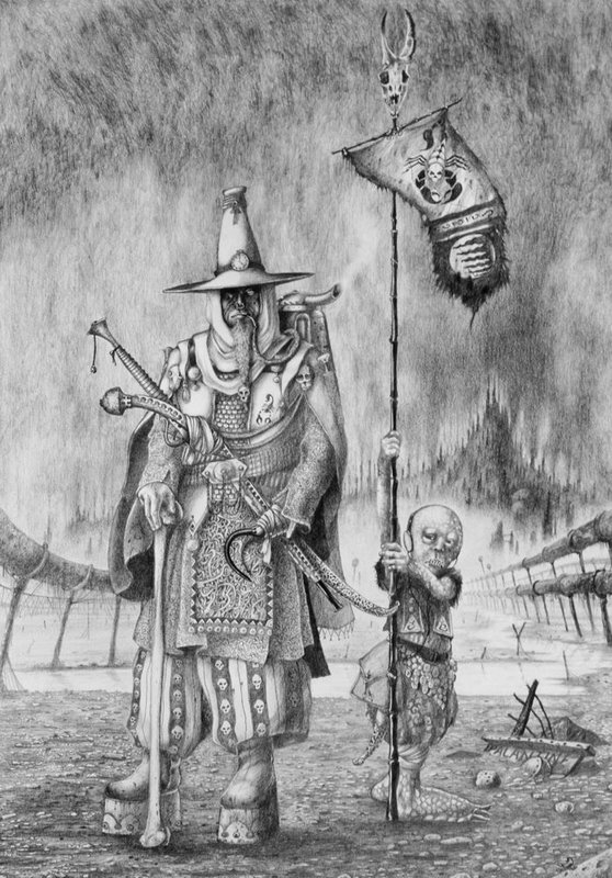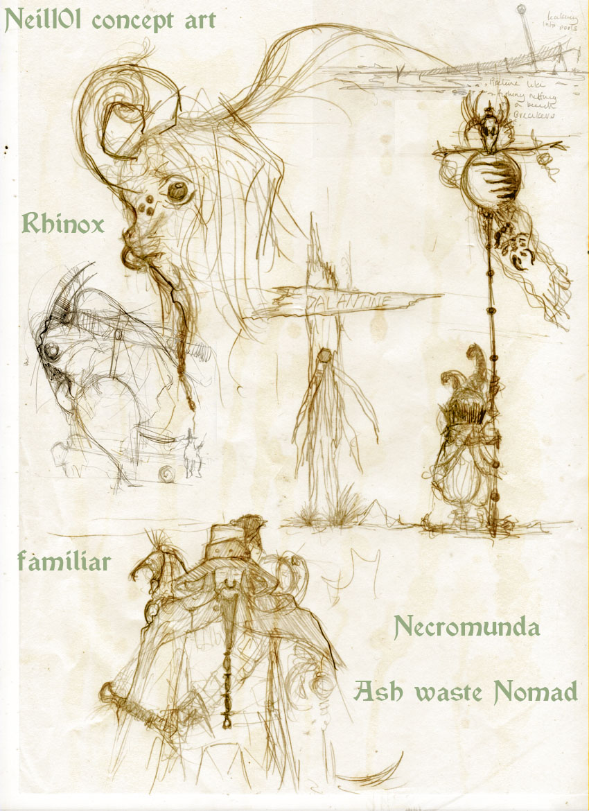is now in the planning stages      I really digged the idea of using the Ash waste as a starting point. And i have been wanting to create some ahs waste traders since they firts came out back in ..erm 1991     so i will finally use this opportunity to kill several birds with one bolt round     i have already stared work on the Trader , and its so much fun , will pots some pics when my cam has new batteries      but for now i wanted to share with you the concept art from confrontation that has me giddy like a kid on christmas eve.