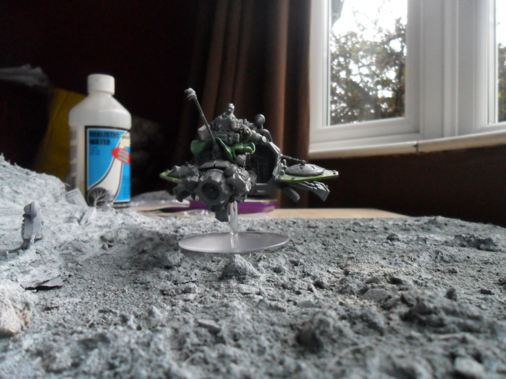 so i made this , it wont ahve the space marine on when complete as i like my marines full size ,      maybe an arbite or ash waste trader  zooming out over the frozen chem sands of necorumanda though