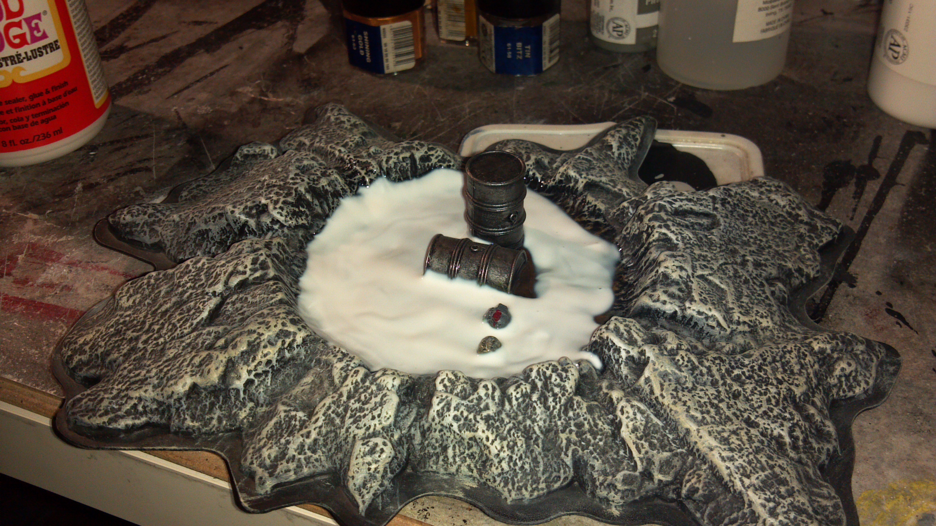 So mod podge is a cheap fast drying way to do water effects. I still think my favorite is gloss varnish for canvases. If you just want a thin coat of water mod podge works well and drys very fast. Cloudy to clear in about 12 hours. The only problem I found with it is air bubbles. So for a cheap effective , fast drying water go for mod podge. For a deeper water use gloss varnish, it takes much longer to dry but a lot less air bubbles. If anyone knows a way to reduce the air bubbles or has used mod podge please comment. I would love to know you faired with it.