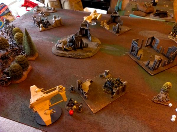 Boringly enough those ruins were built for 5th but I also added some larger Los blocking buildings to them. I've got a feeling that they may have been absorbed and repainted into my set. What you have there is a haemonculus of mismatched buildings and odd bits that will fit into a single crate, some imagination will be required to play a good game on them! It was a convenient travel/limitedstorage set up.