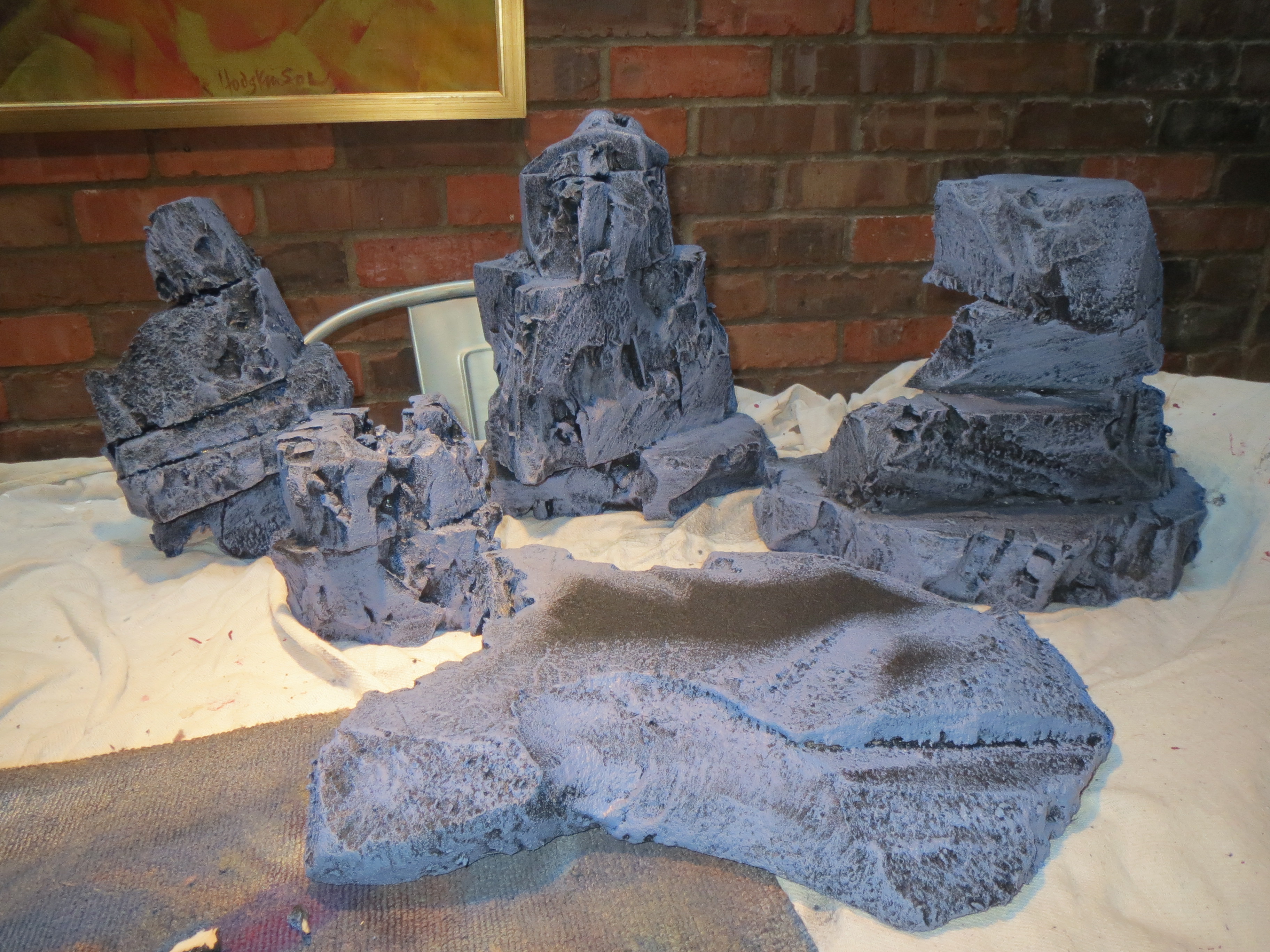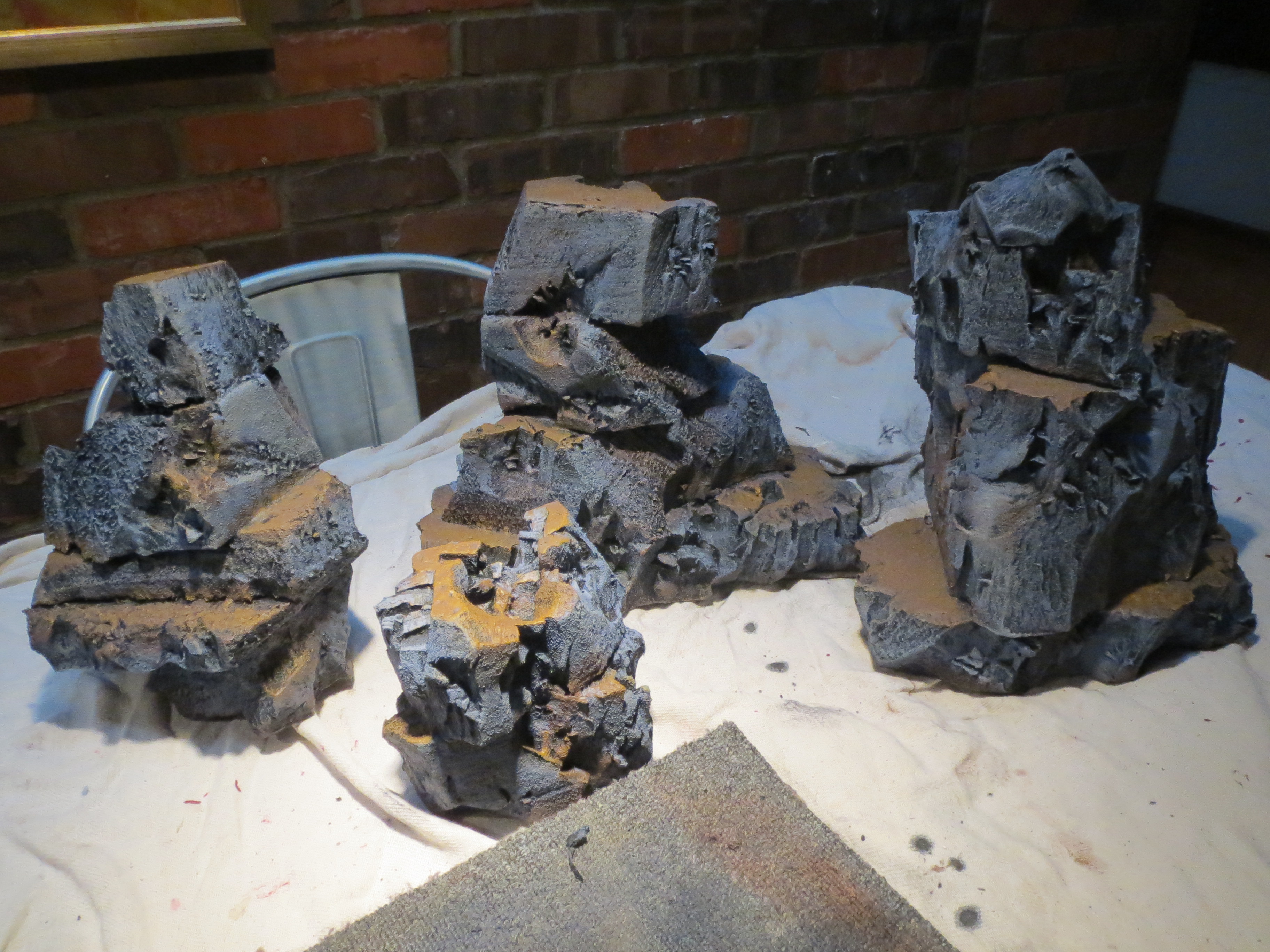 Might even get frisky with some flock before then if I'm feeling excitable or we could do that Wednesday and/or paint match the bases from the other terrain stuff what you got?