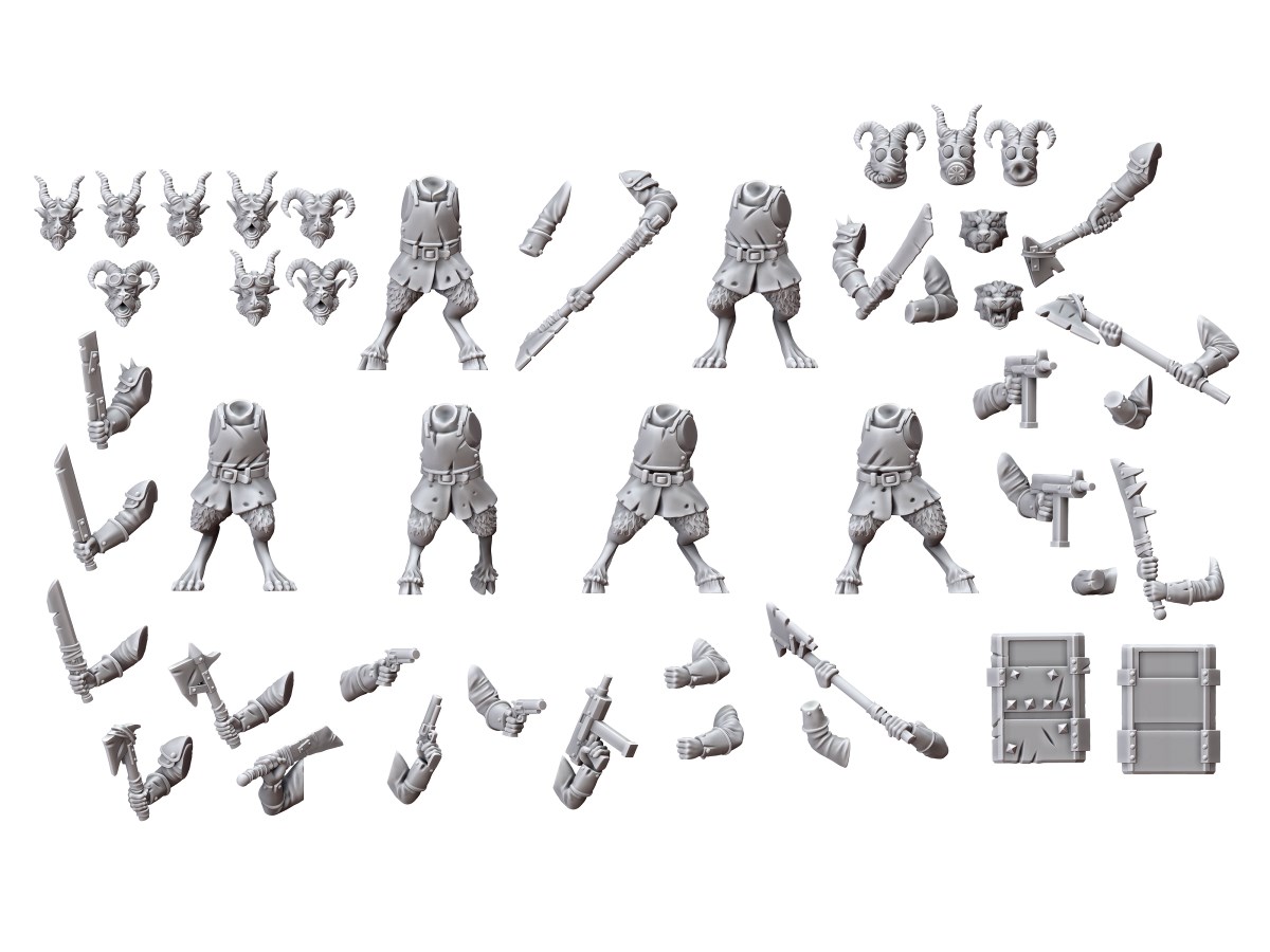 Now I am a big fan of the sack totting goat heads! I'm also in love with the eyebrow raising heads. Don't forget the heads from other infantry sized set will fit the torsos from this set and vice versa.