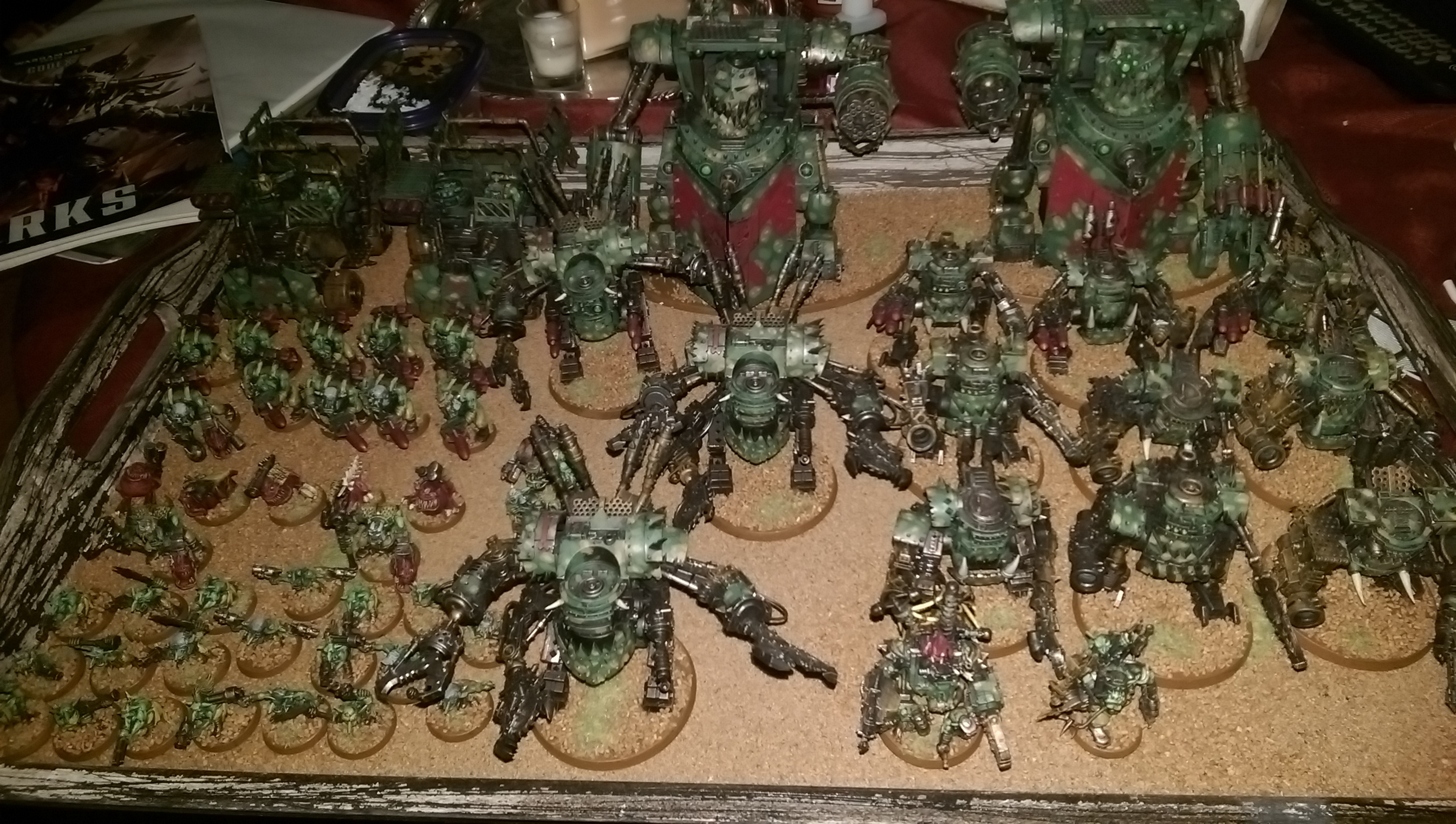 Second game vs Eldar and a reaver titan. He seized initiative I was bunched up, 4 D Templates killing half my army and both Morkanauts pretty much game over after turn 2.