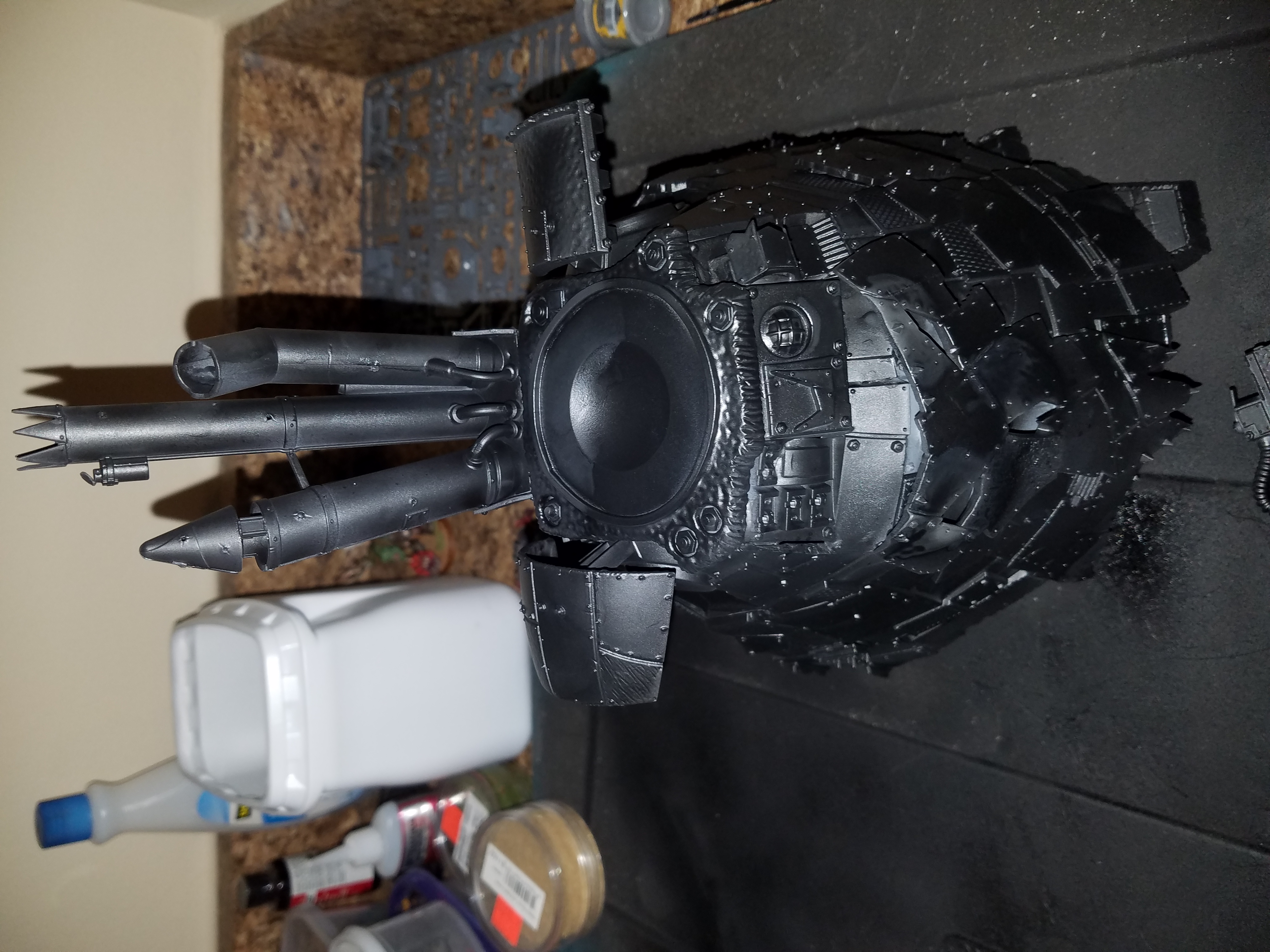 Finished adding more base coat to the arms and head of the Stompa.