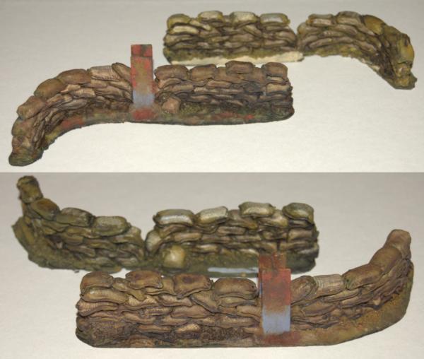 And so it comes again that moment when I have to skip weekly blogging due to "serious reasons and real life". But I have at least finished another wall of sandbags. It's in front of the one I did last year. Tried some more rusting with Vallejo pigments, feels less wrong than the last time around.