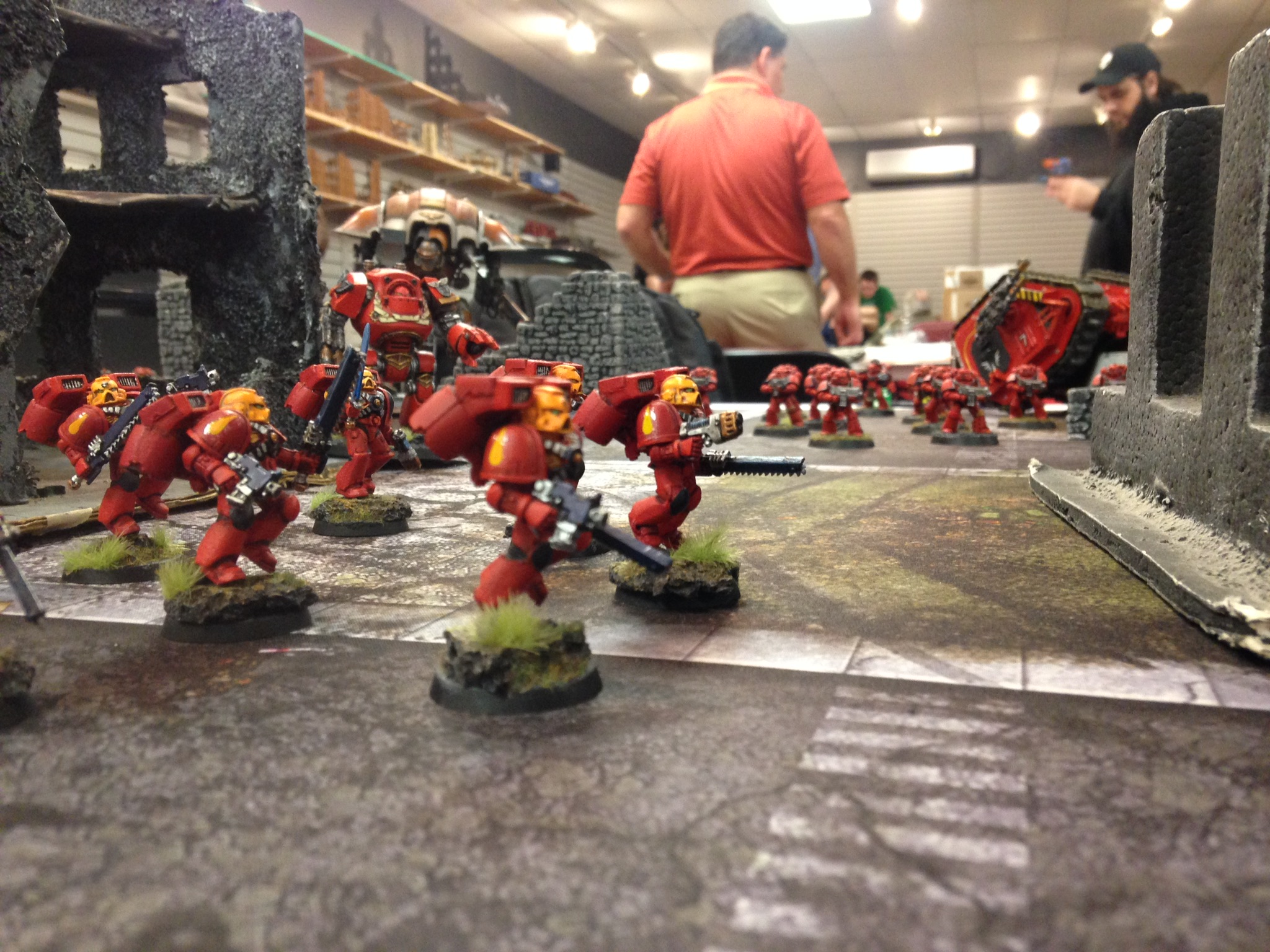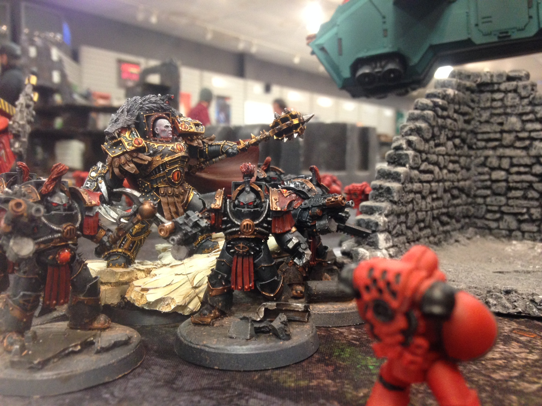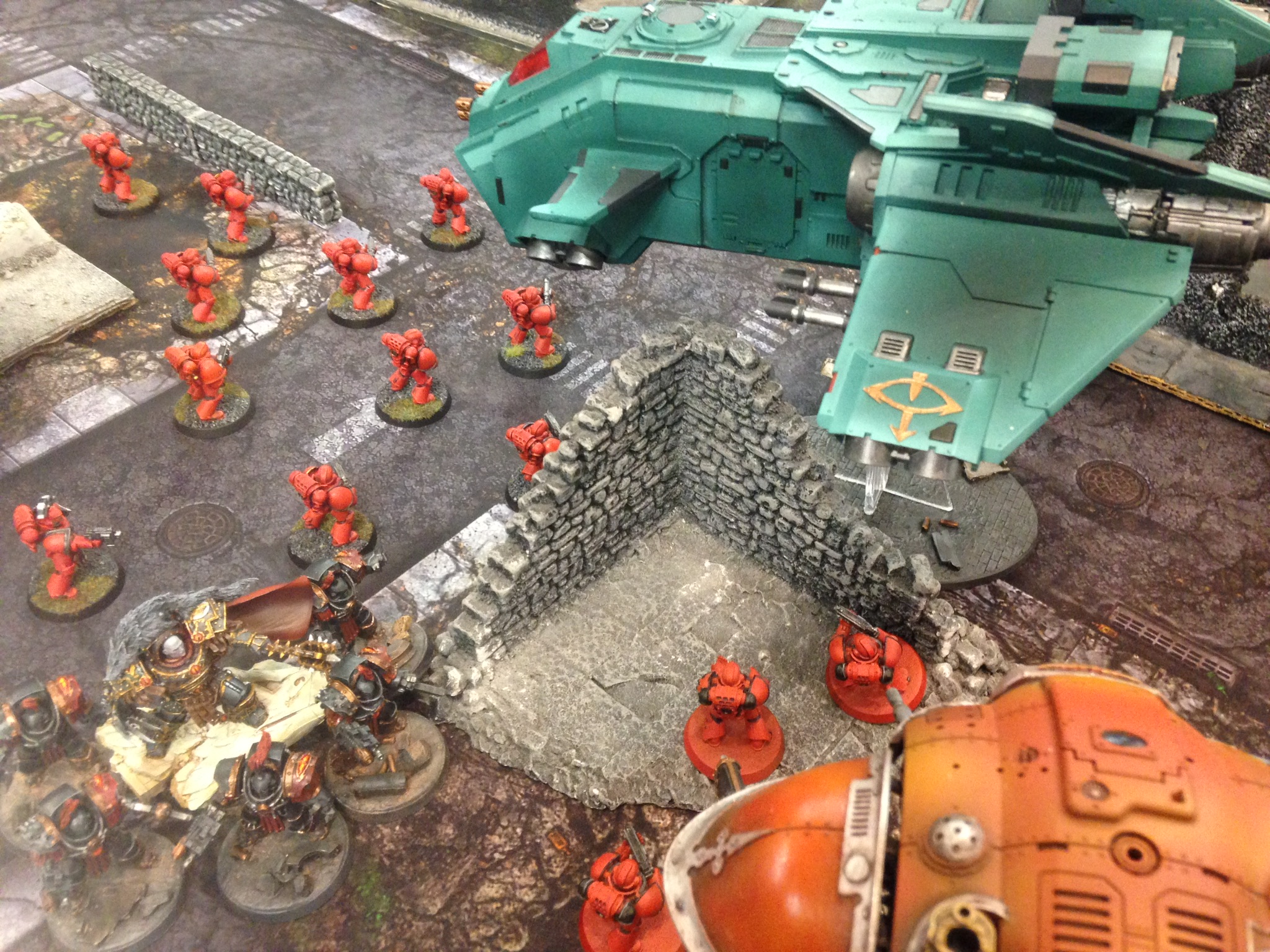 Some photos from last nights 30k battle. Horus and his boys took the Blood Angels to town and did not buy them dinner. My opponent Lee has a great looking army and is always fun to play against.