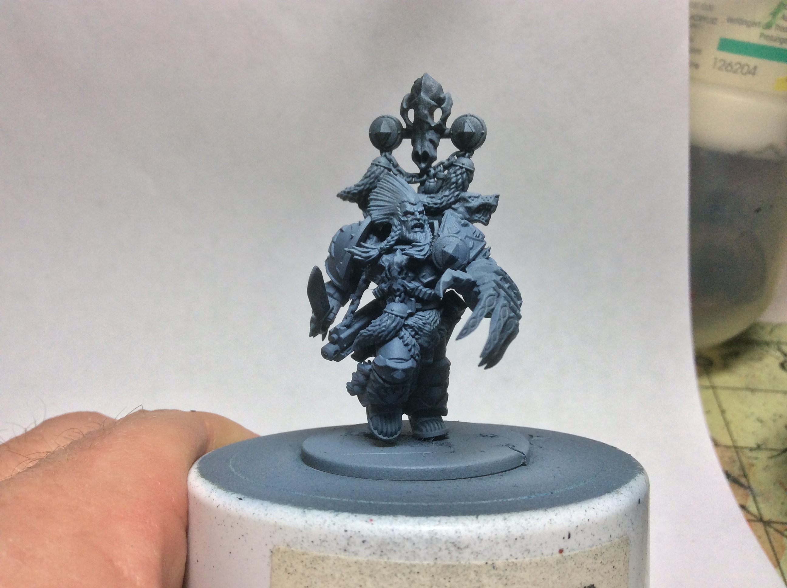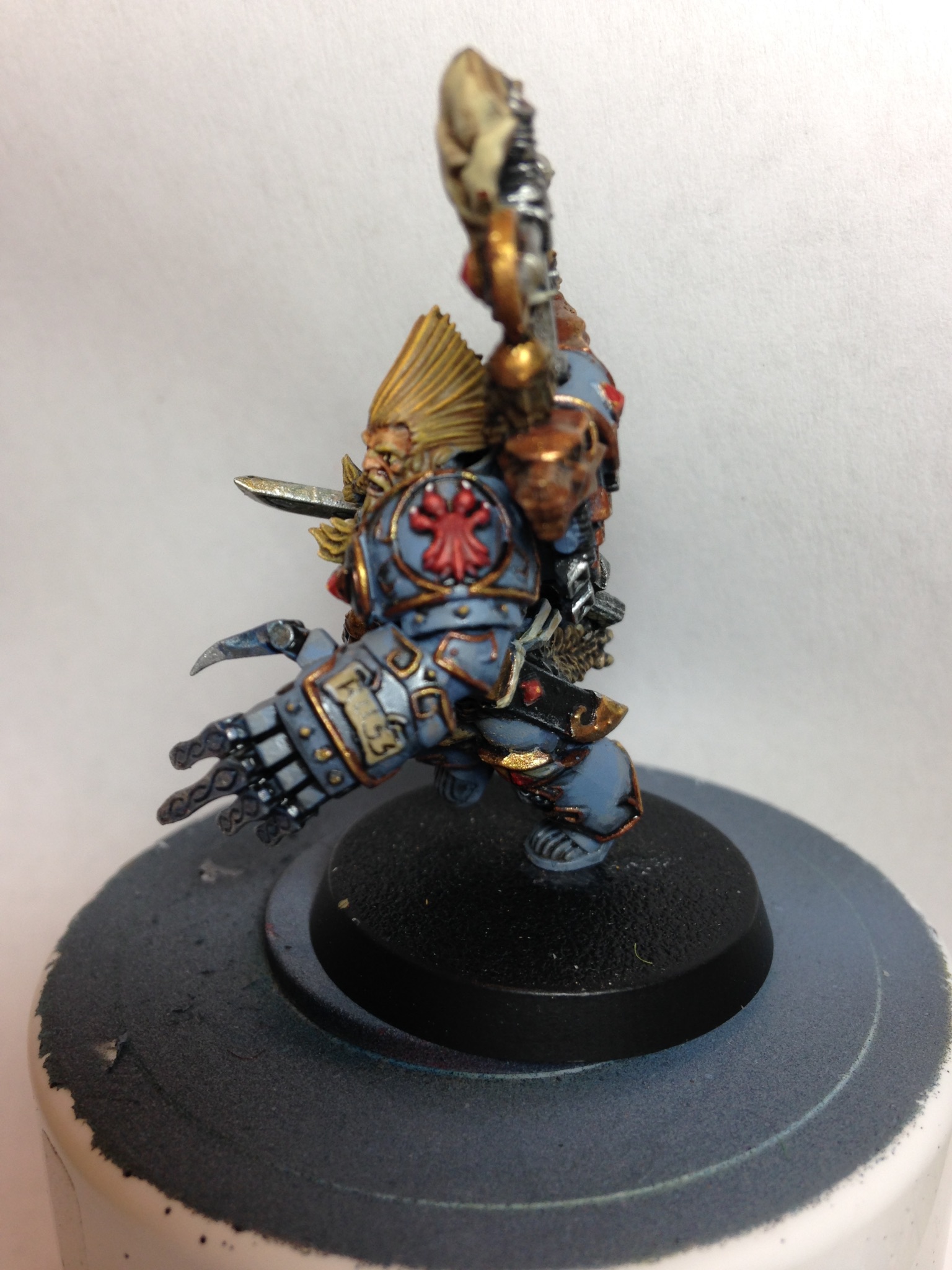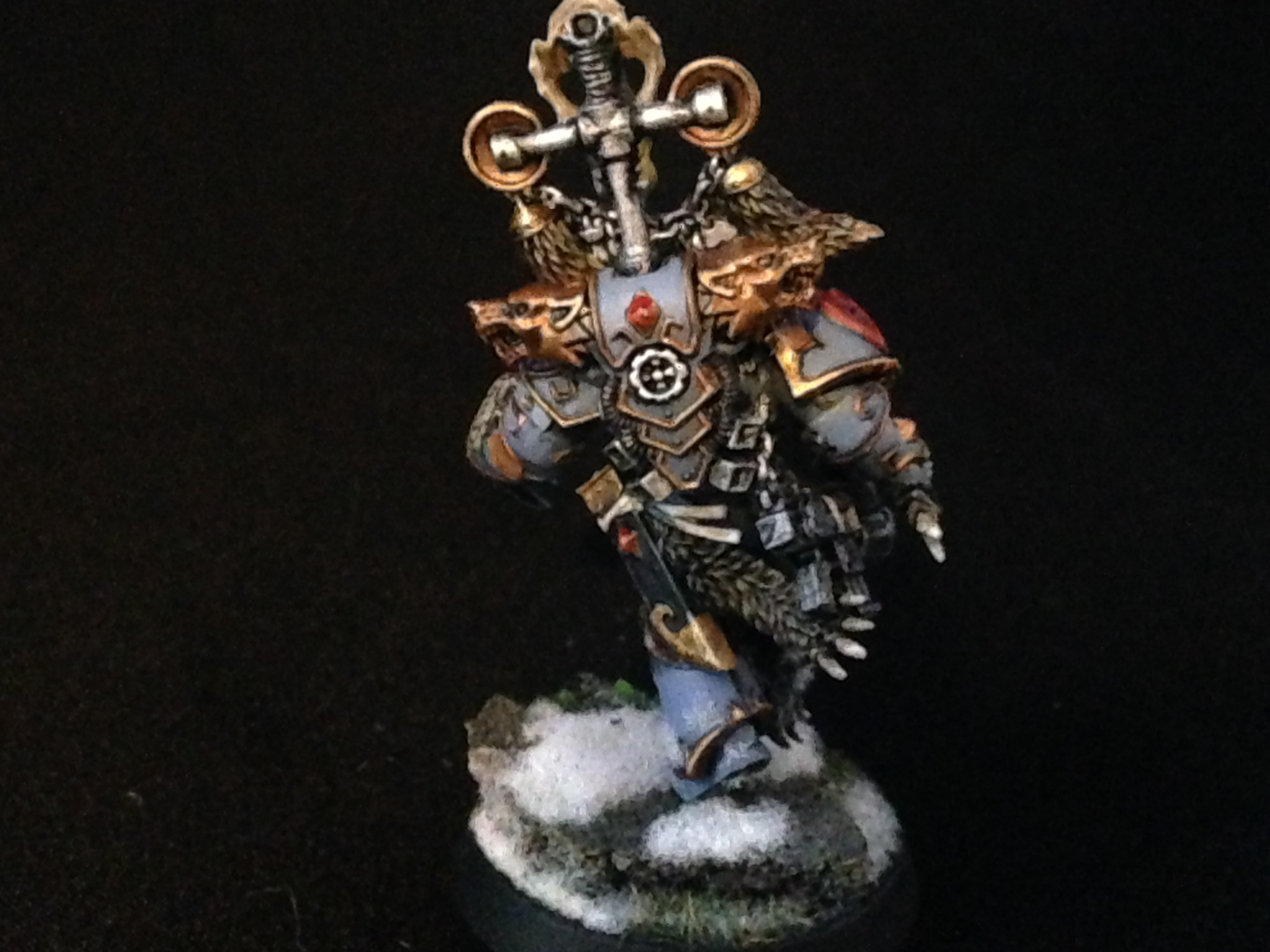Trying my hand with the wolf lord from the prospero box. He is more gray blue than the picture shows, lots of details to pick out.