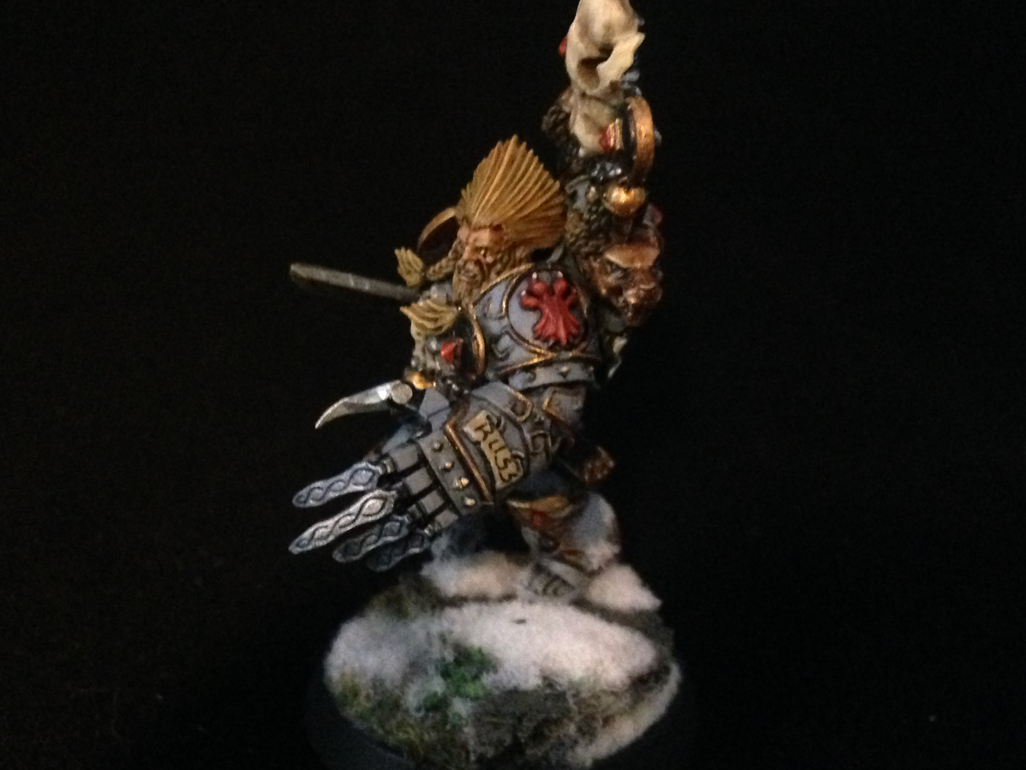 Here is Fell-Hand painted and ready for delivery. He is going to one of our local gamers who is starting a 30k wolves army, this way he will see the tabletop.
