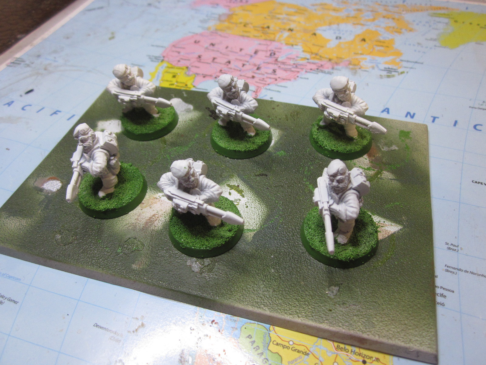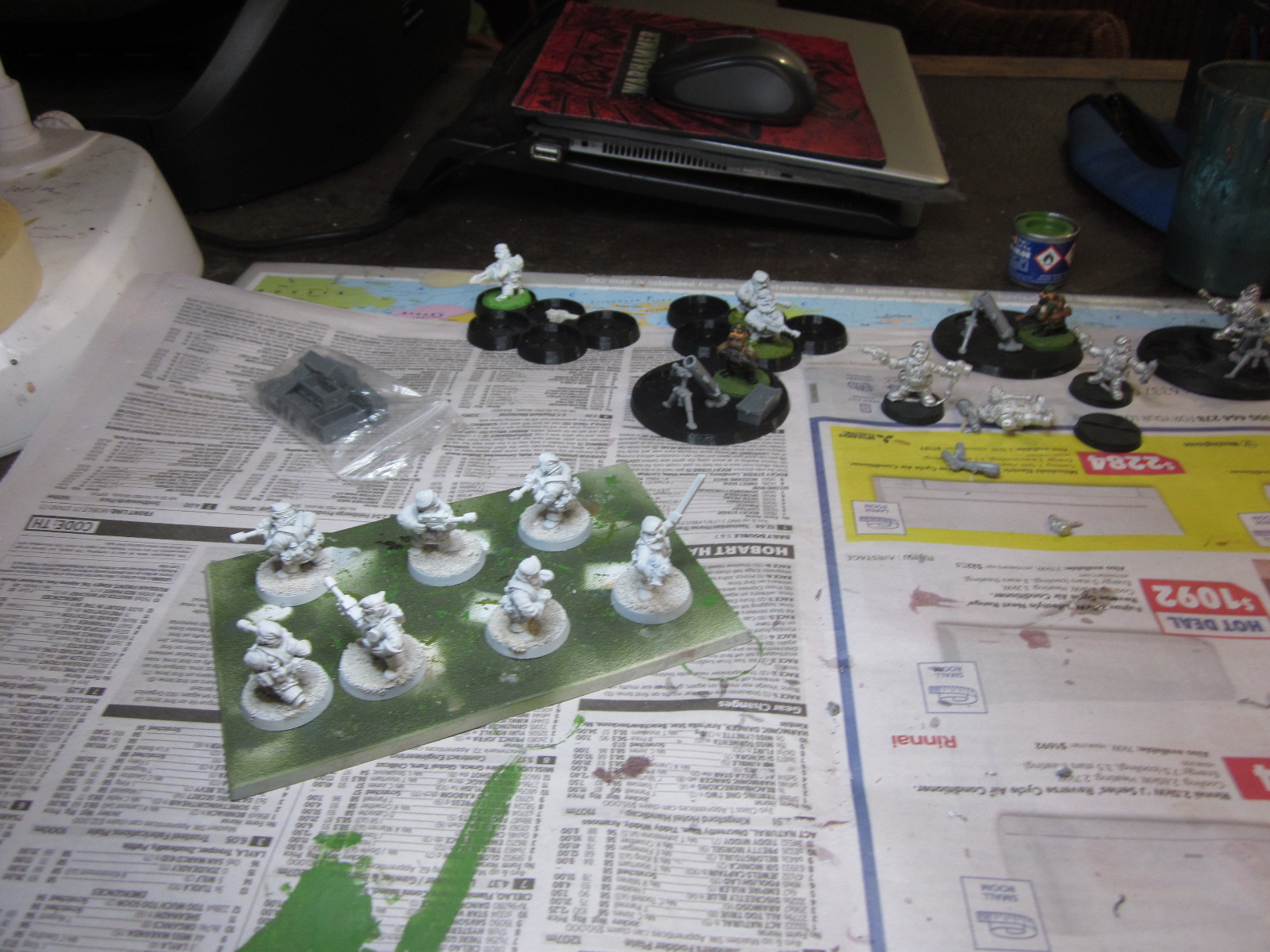 I just finish the last Squad so all are now undercoated and based. I left the Mortar Squad till last as I had to work on mortifying Troopers with Mortar shells. I used a couple of NCO figures as I have more then I can used so they are being converted to crews and stubber gunners. They have come not bad at all.