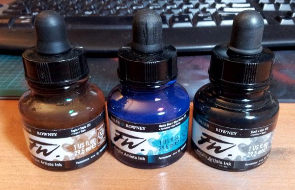Sure...I start out with a boltgun metal base. I then airbrush the following inks in order: sepia, marine blue and then black.