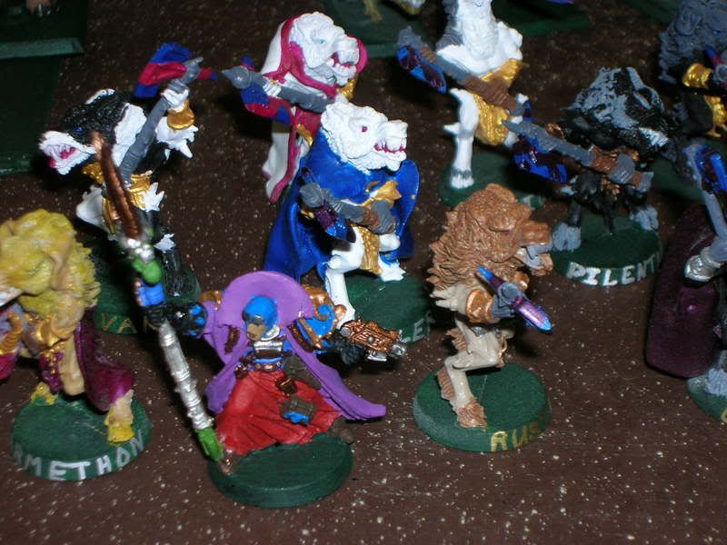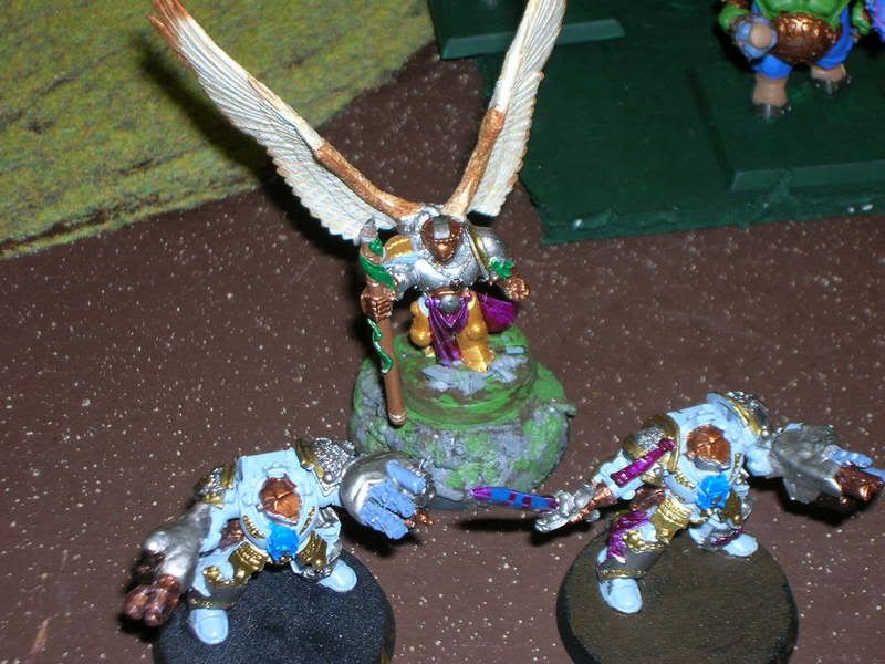 I really like the model concepts you have going on here. The whole bright and shiny, seraphim-laced models representing Chaos is pretty cool. I can certainly picture your Champion of Law advancing to an enemy character, looking every bit as regal and awe inspiring as any angel, and striking them down with cold, dead eyes.