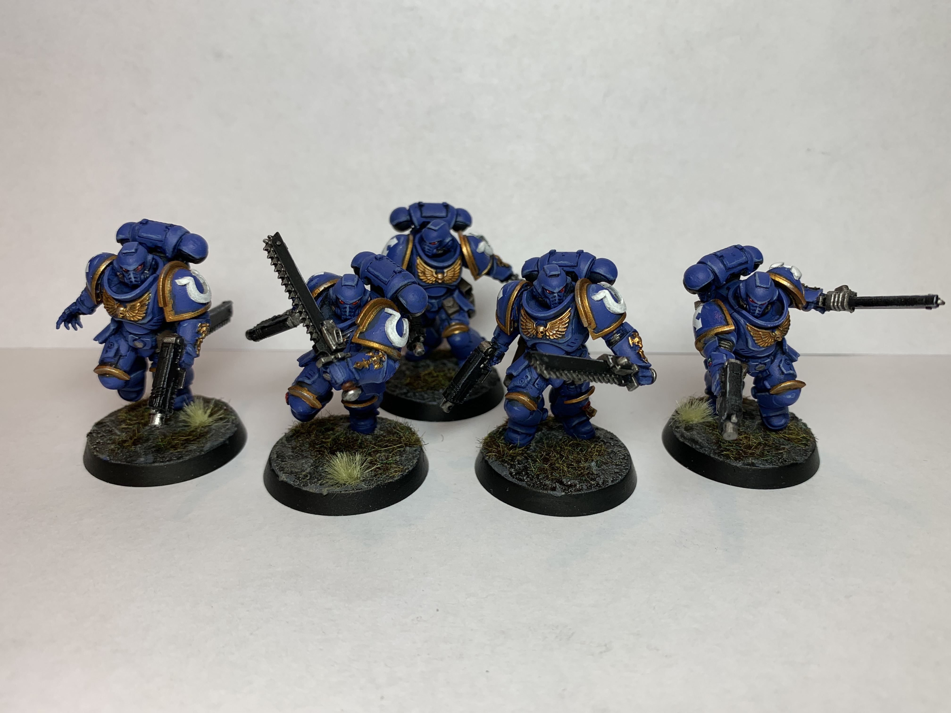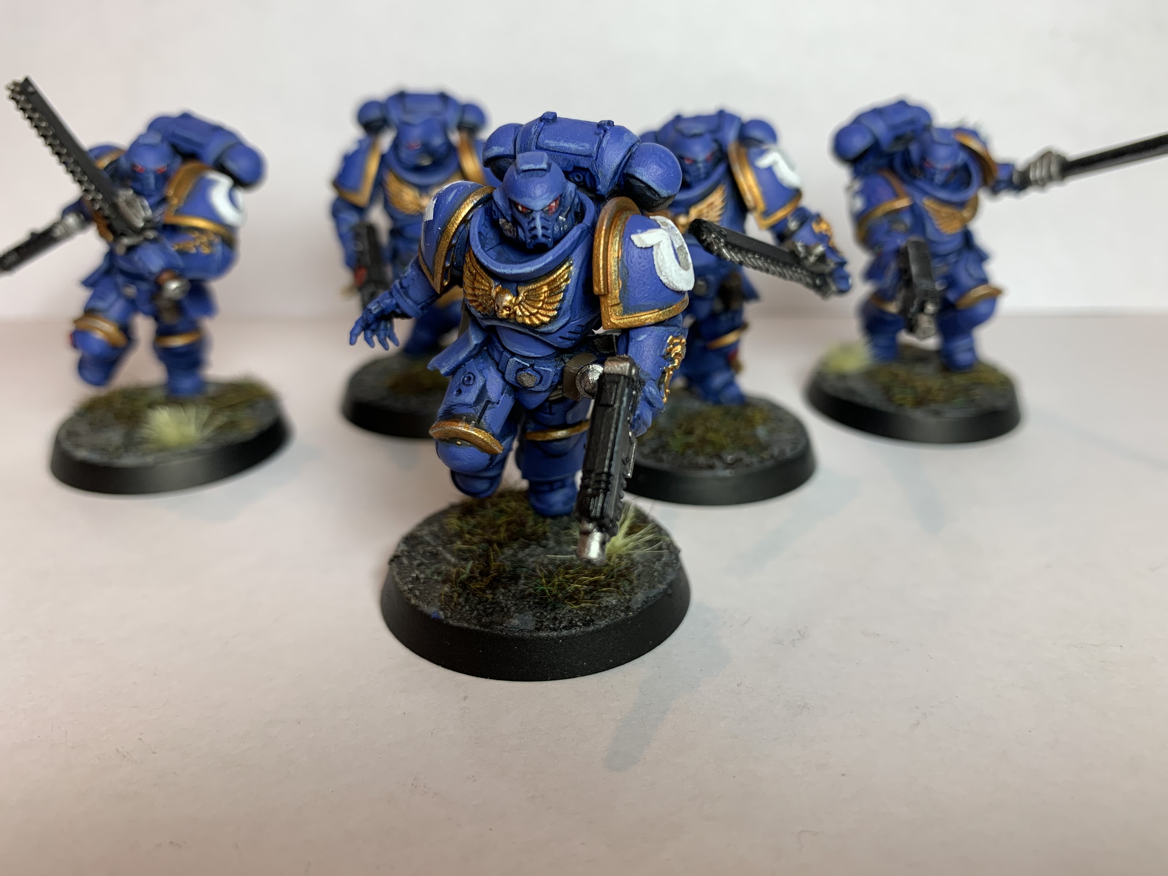 Forced myself to sit down and finish the last 5 of the Assault Intercessor squad, I think it’s been a month since starting them. As there bases were drying I grabbed the new Captain and started on him.