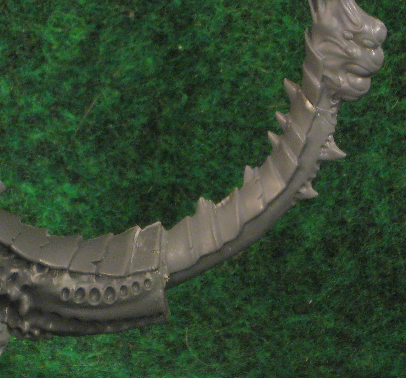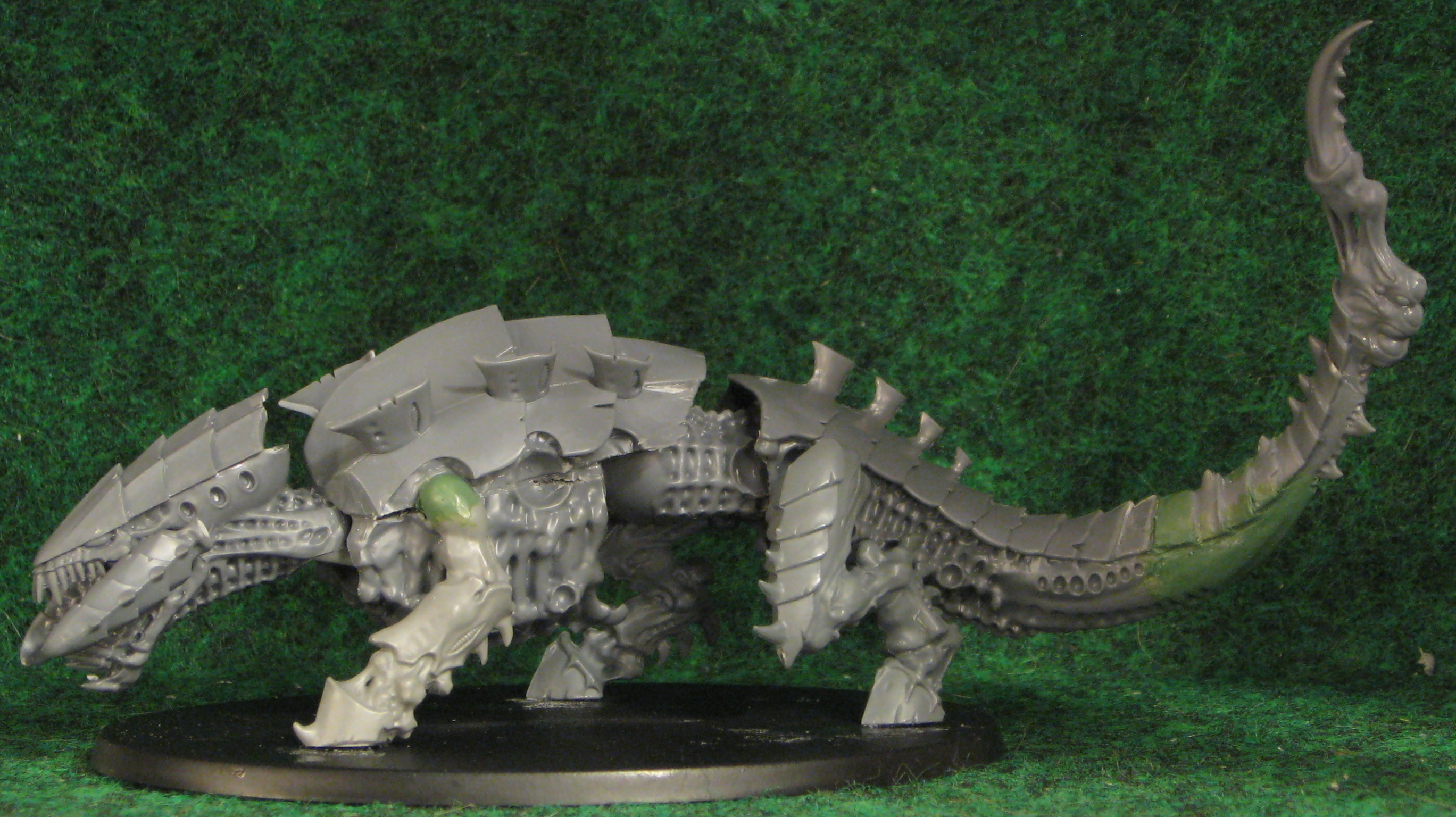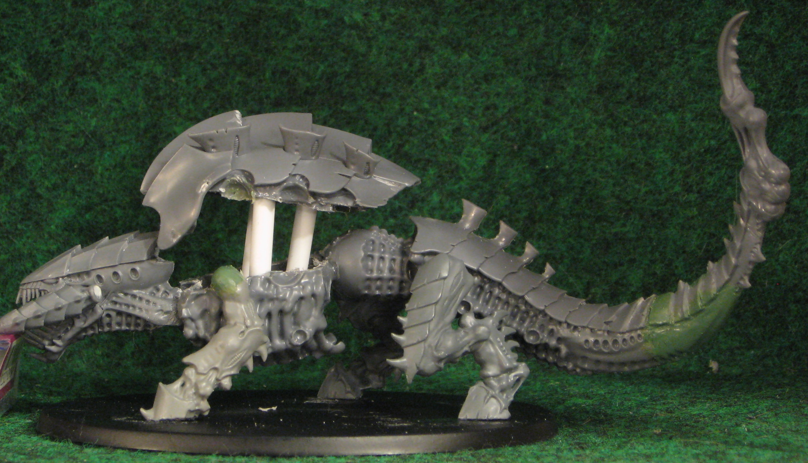 Just got back from the FLGS so no new pictures yet. The guy who was supposed to bring me the Crushing Claws I needed to finish his legs off was sick and didn't make it, so I bought a Carnifex so I could use those claws. Want to get his legs all done and secure tonight, maybe move his head, so tomorrow I can pop him off the base and get the underside done. I want to have this Done before the end of Saturday so I have it fully finished for the tournament on Sunday.