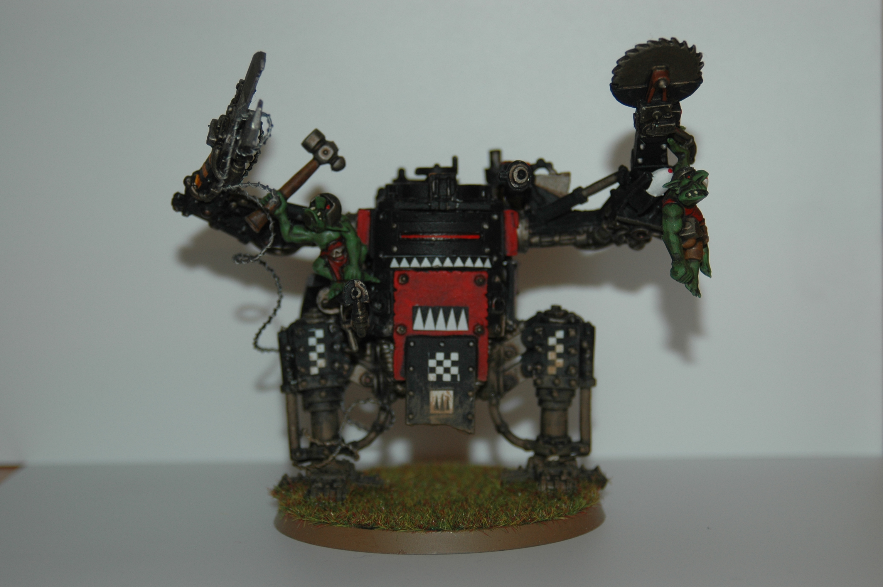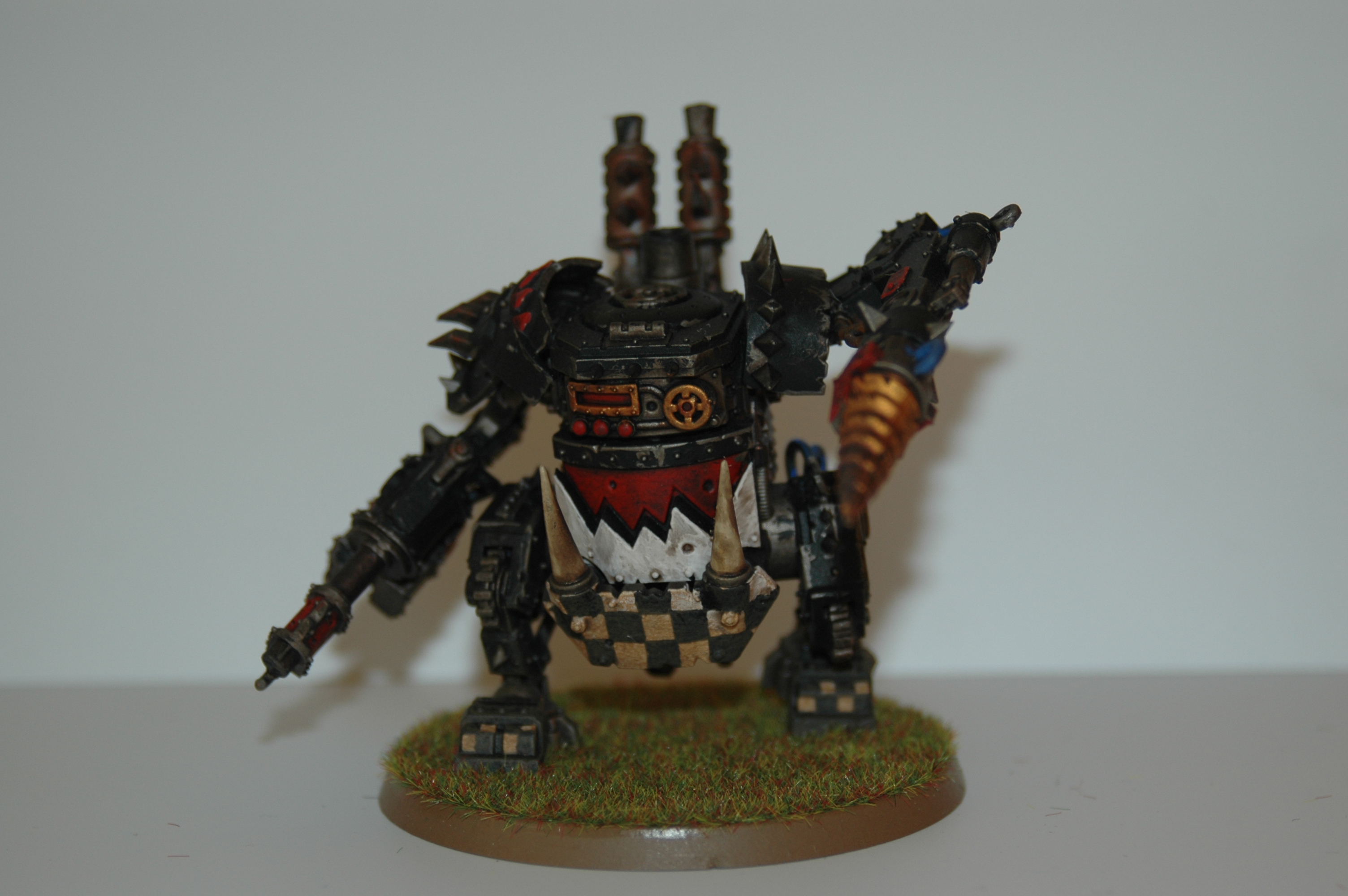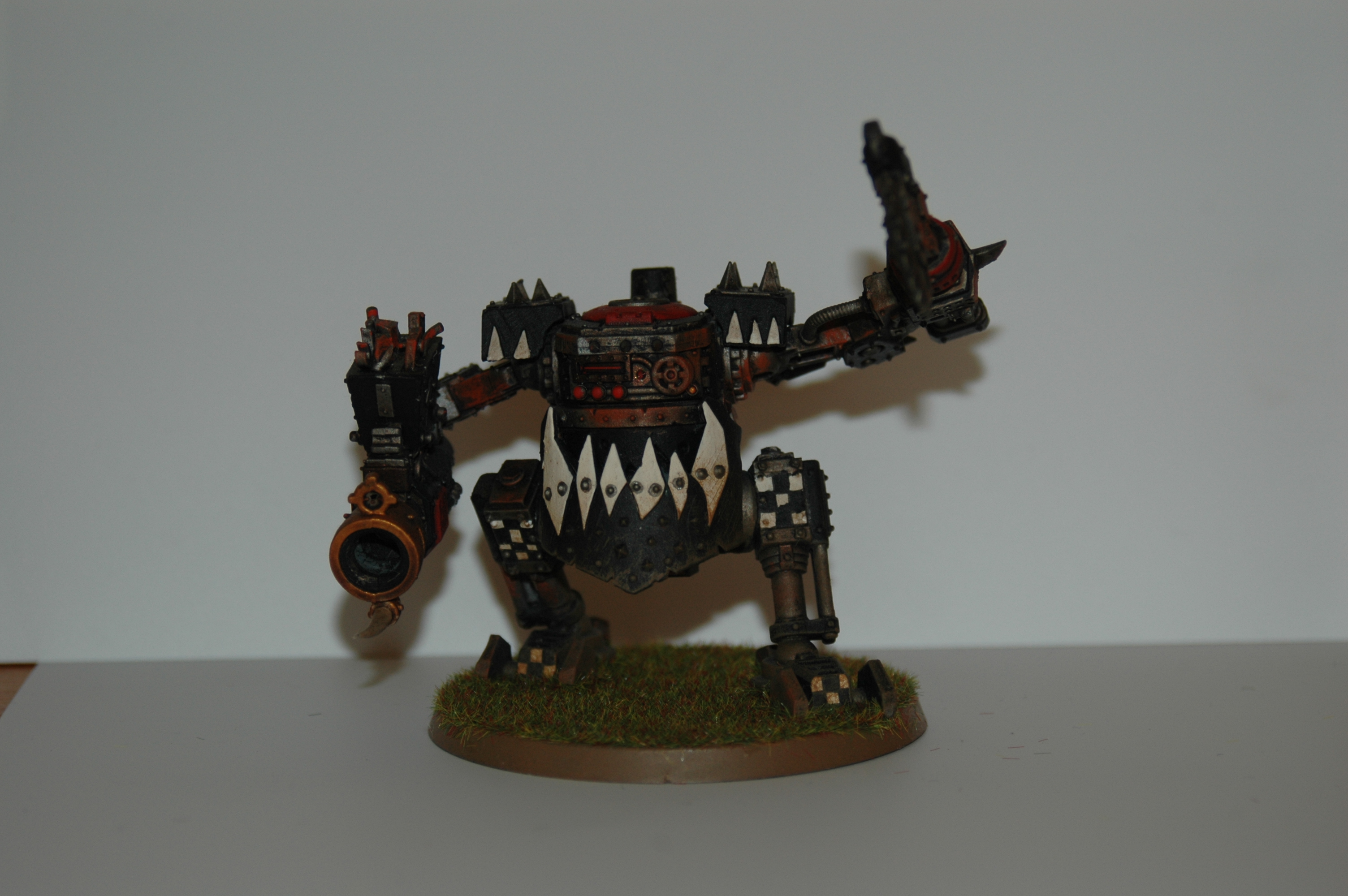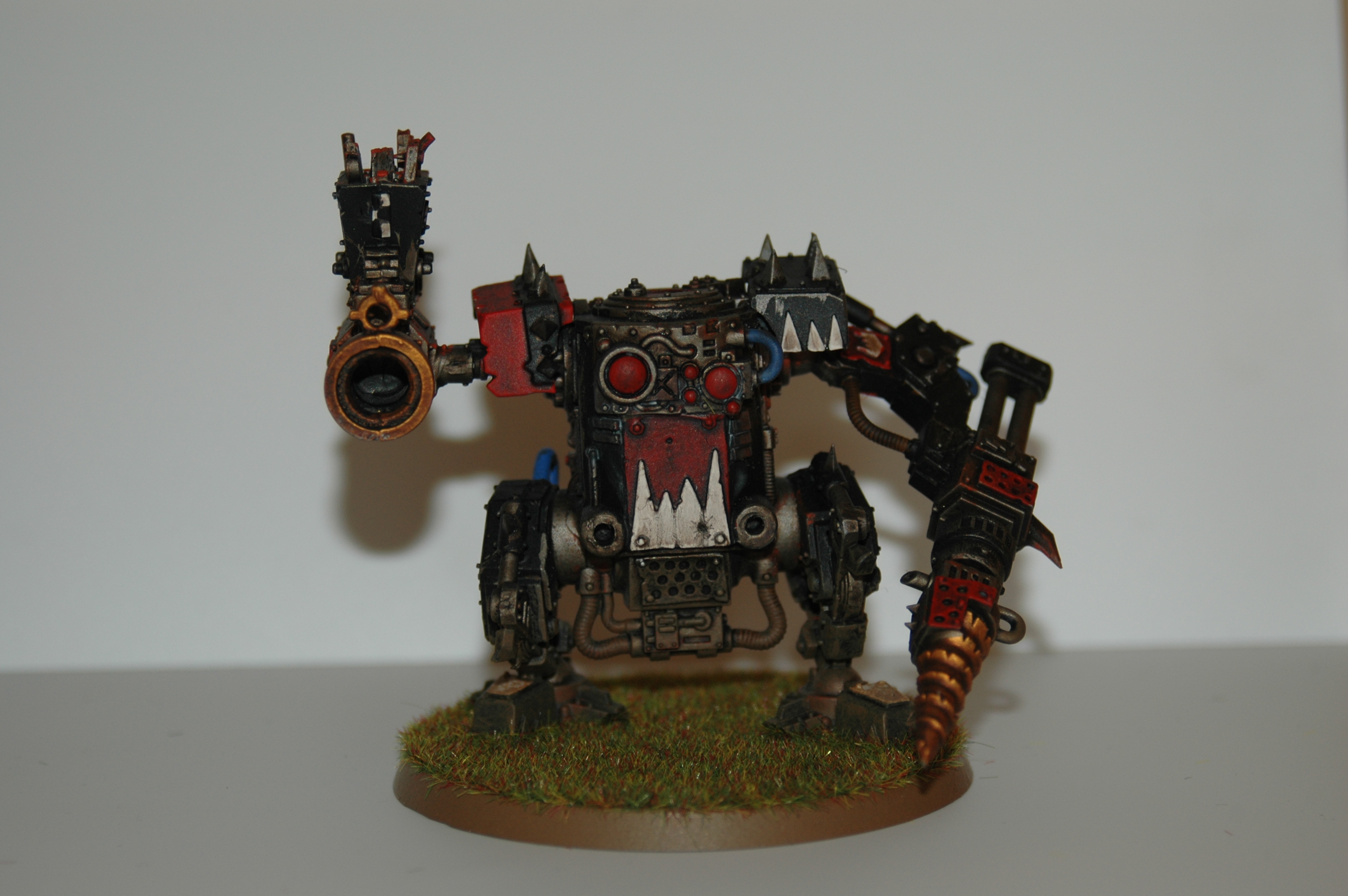 here is my ork deff dread, i did a conversion on the both arms and the mounth