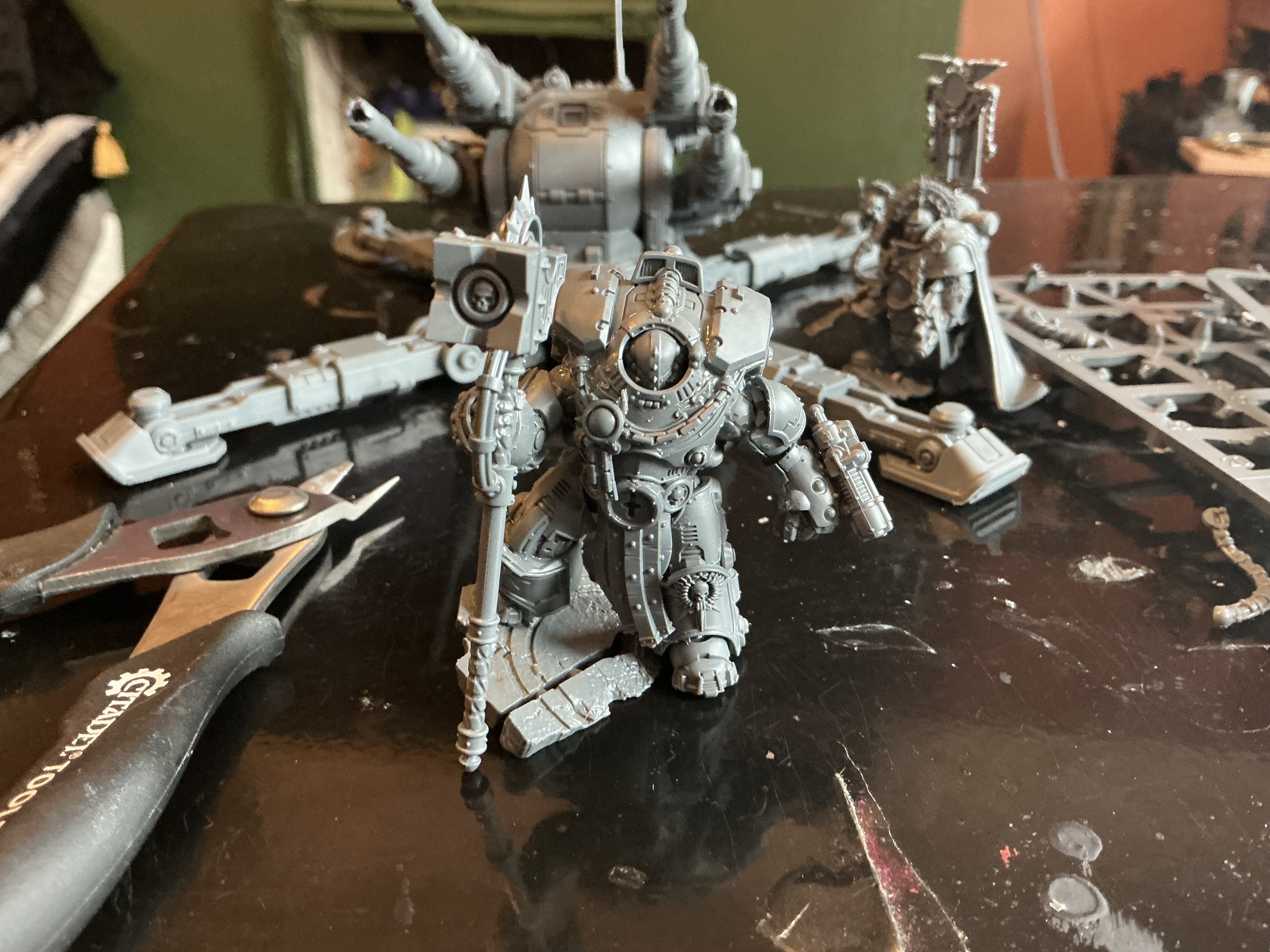 Over coffee, I managed to finally finish building the Siege Breaker and Augury squad, which were interrupted by other printing commitments and the arrival of Epic Warpath