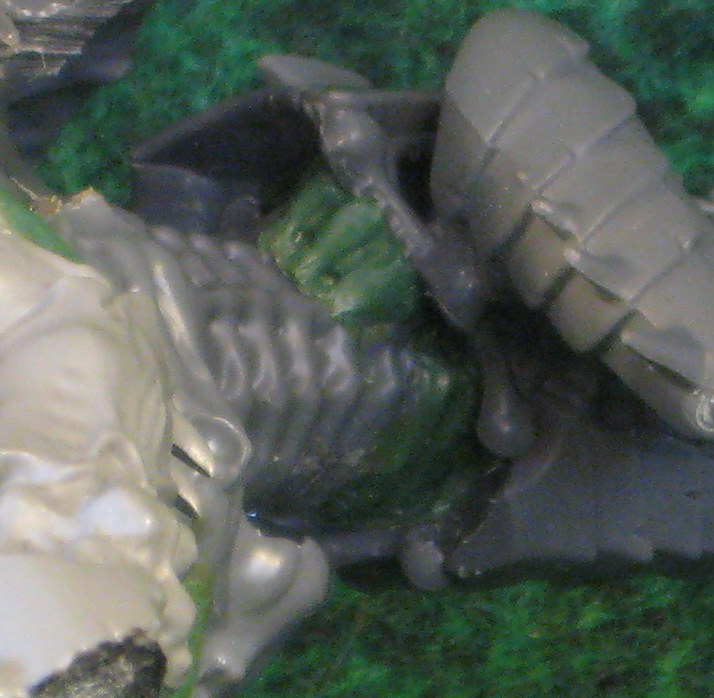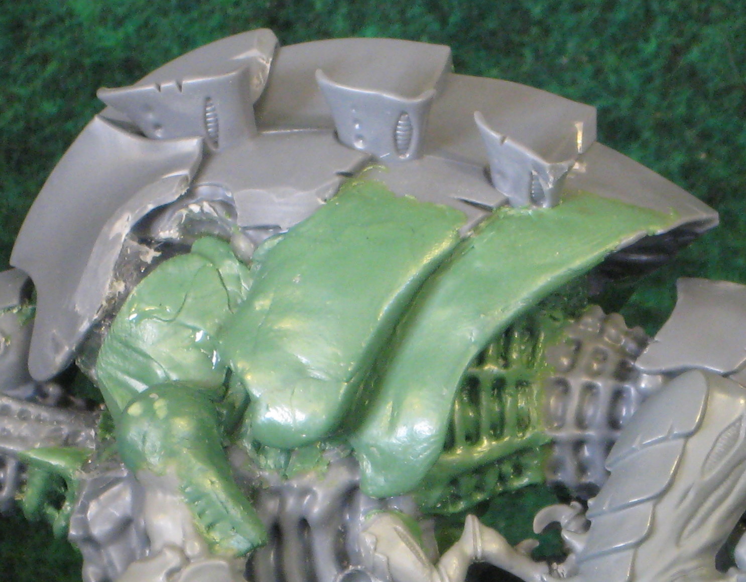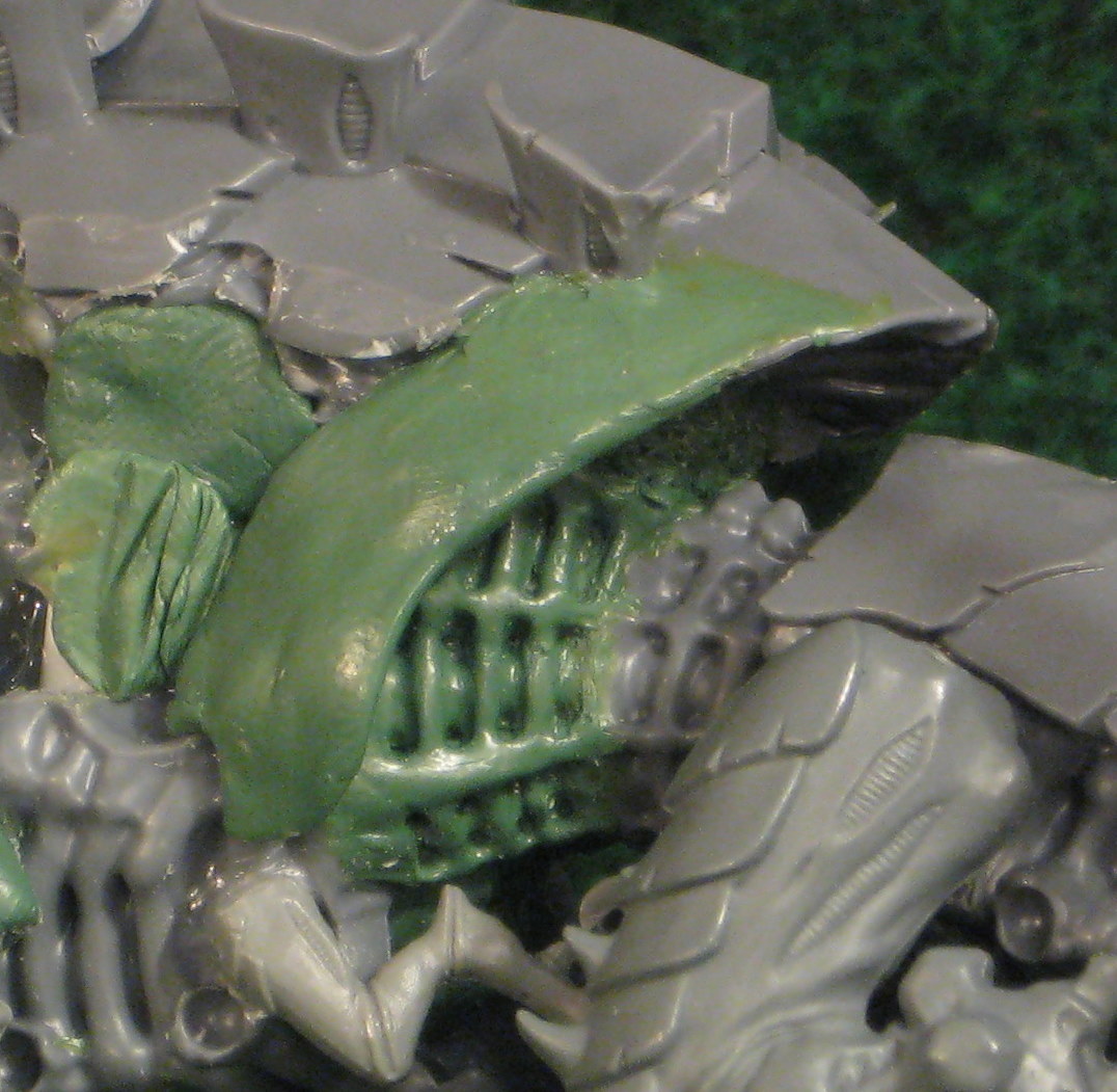 And for free hanging greenstuffing like the carapace you did i would glue bent, thin bit of plasticard starting under the the topp carapace to wherever i whanted it to go for added stability when doing it.