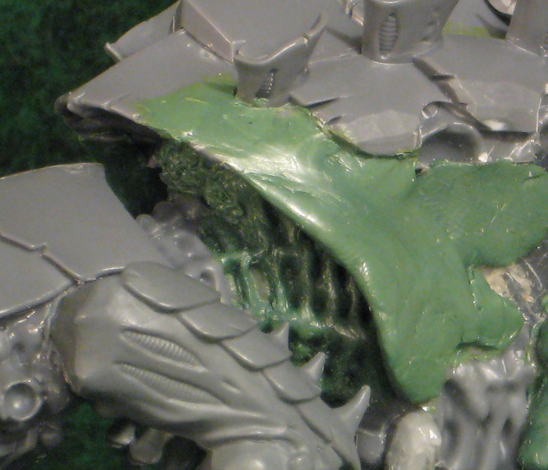 Yeah, the pooper's nothing super creative or original, but when I wanted a circular organic "door" it was the first thing I thought of. I wanted it to be something that would close up good, to protect the insides, but look like it would open for Gaunts to come out of, and the little arms to catch them were an idea from a guy at the FLGS. Could I have made something more complex? Possibly, but I don't want to make something more complex just to show off skill or something, an one of my goals at the moment is to maintain Tervie's profile as much as possible, because I really do like his shape right now and wonder why it's never been done by the studio.