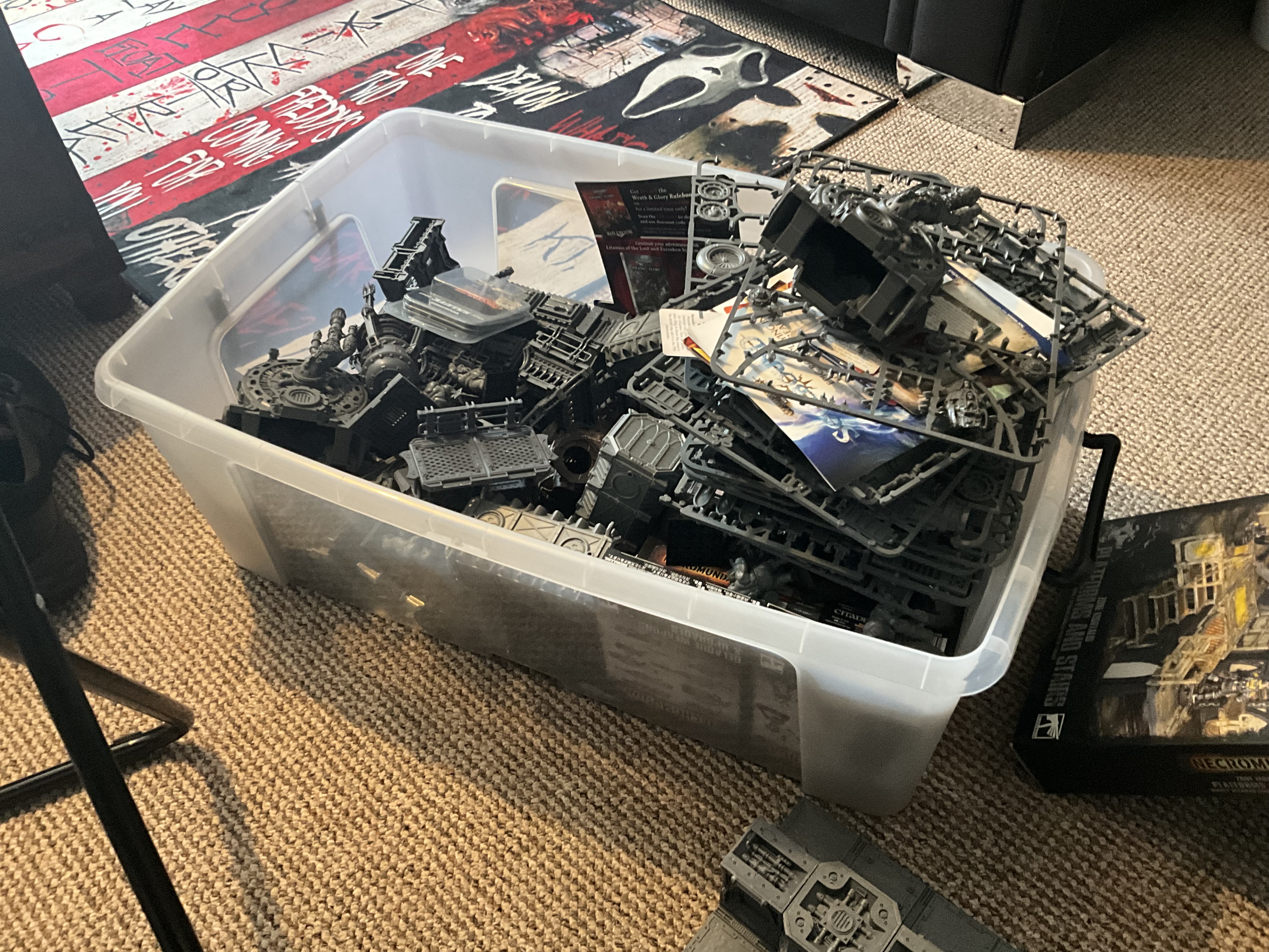 I have a box of Mantic marionette (10 plus drones) and a box of Mantic pathfinders (10 plus dog drones). Plus a load of 3D printed scatter terrain.