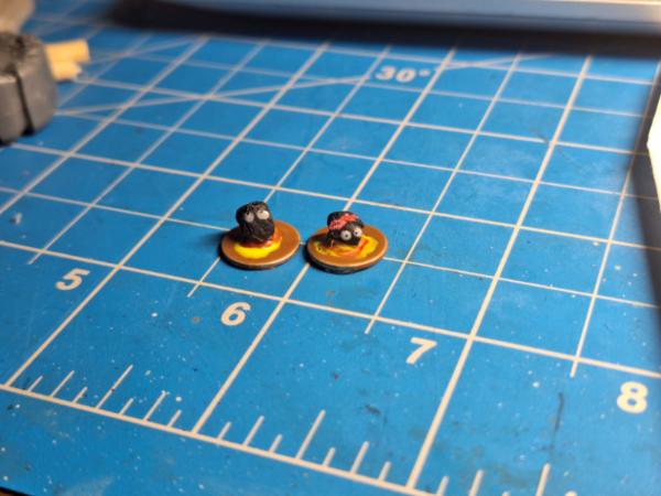 Thank you, Mothsniper. And you are correct again. The animated coal are on washers for bases, half inch washers to be precise. I painted the washers brown because I figured my usual black for bases would make the coal hard to see.
