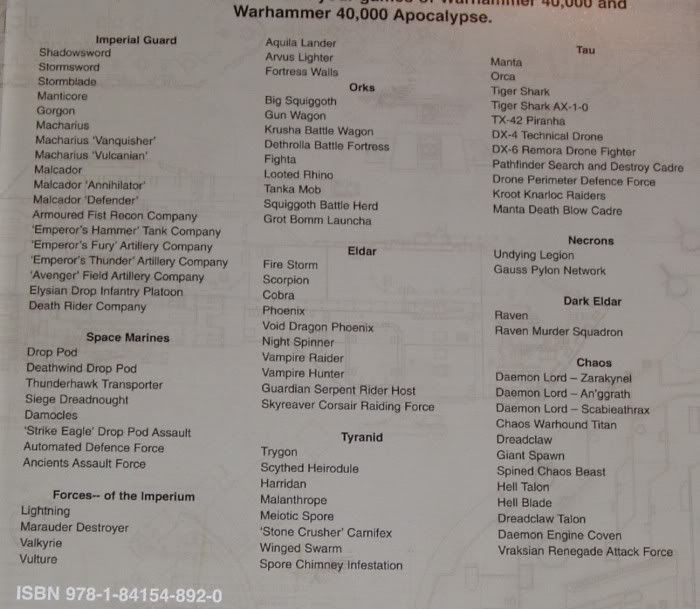 Subject: RE: Imperial Armour Apocalypse - Table of Contents
