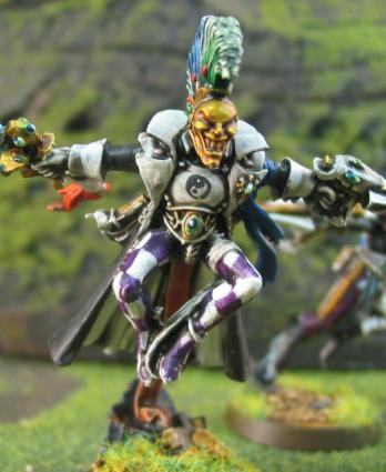 I am more of a fan of the black and white mime/french clown looks for harlequins rather than the "4 year old allowed to dress themselves" look. The latter is just too much, particularly for the supposedly more elegant eldar. Orks, maybe, but they just look too silly other wise. Harlequin is French for "hell rider" after all.