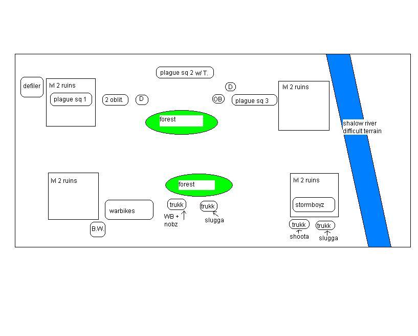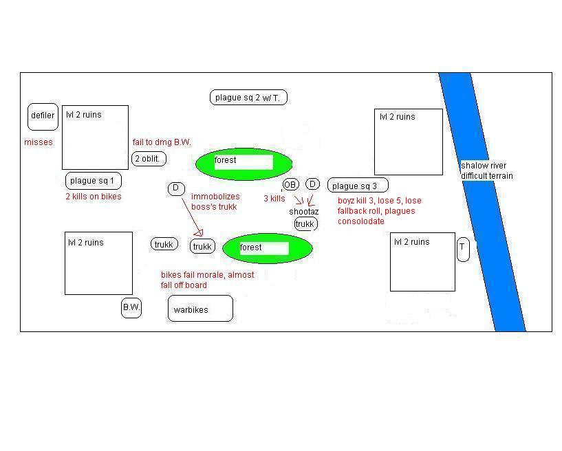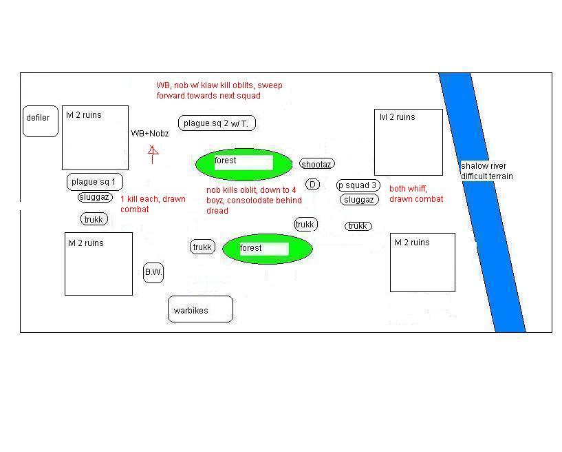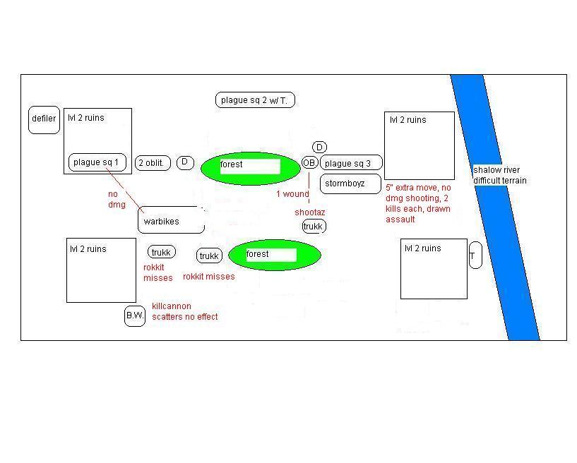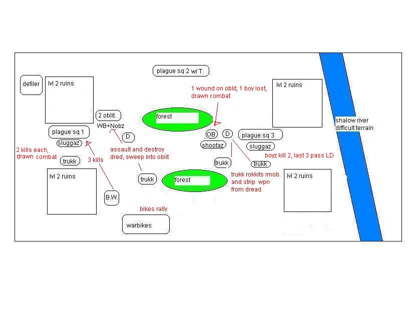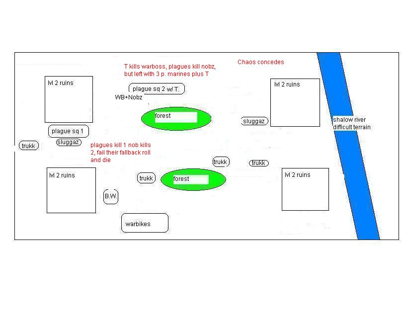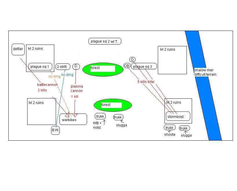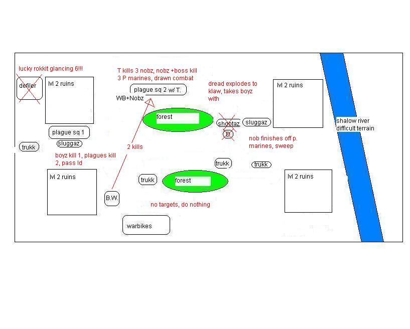 feel free to critique, I knew the bikes were not the best call and they proved it today with their bad LD. stormboyz had bad luck but the warboss went on a waaagh and the nobz slaughtered more than their points before going down.