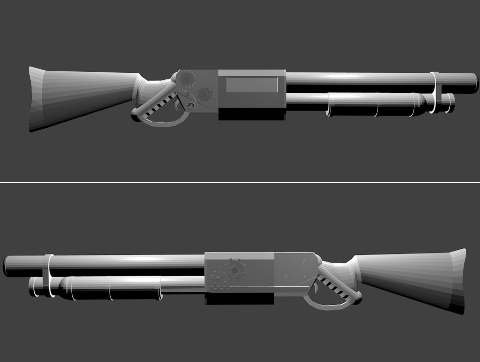 I am still working on both of the shotguns, I like them both, and want to keep them. The first one is going to get a telescoping stock, and I might just take the gears off and make it more modern, not sure.