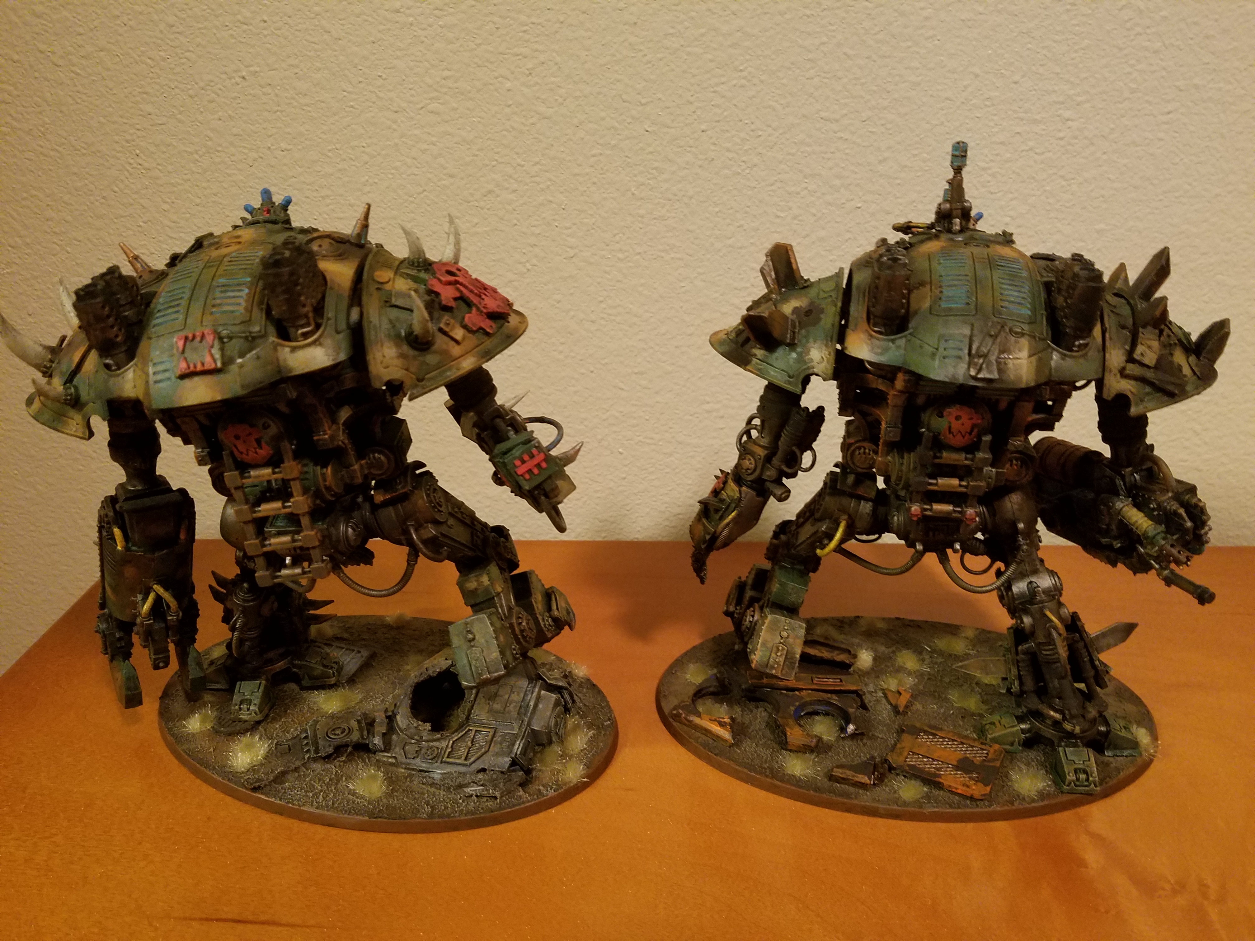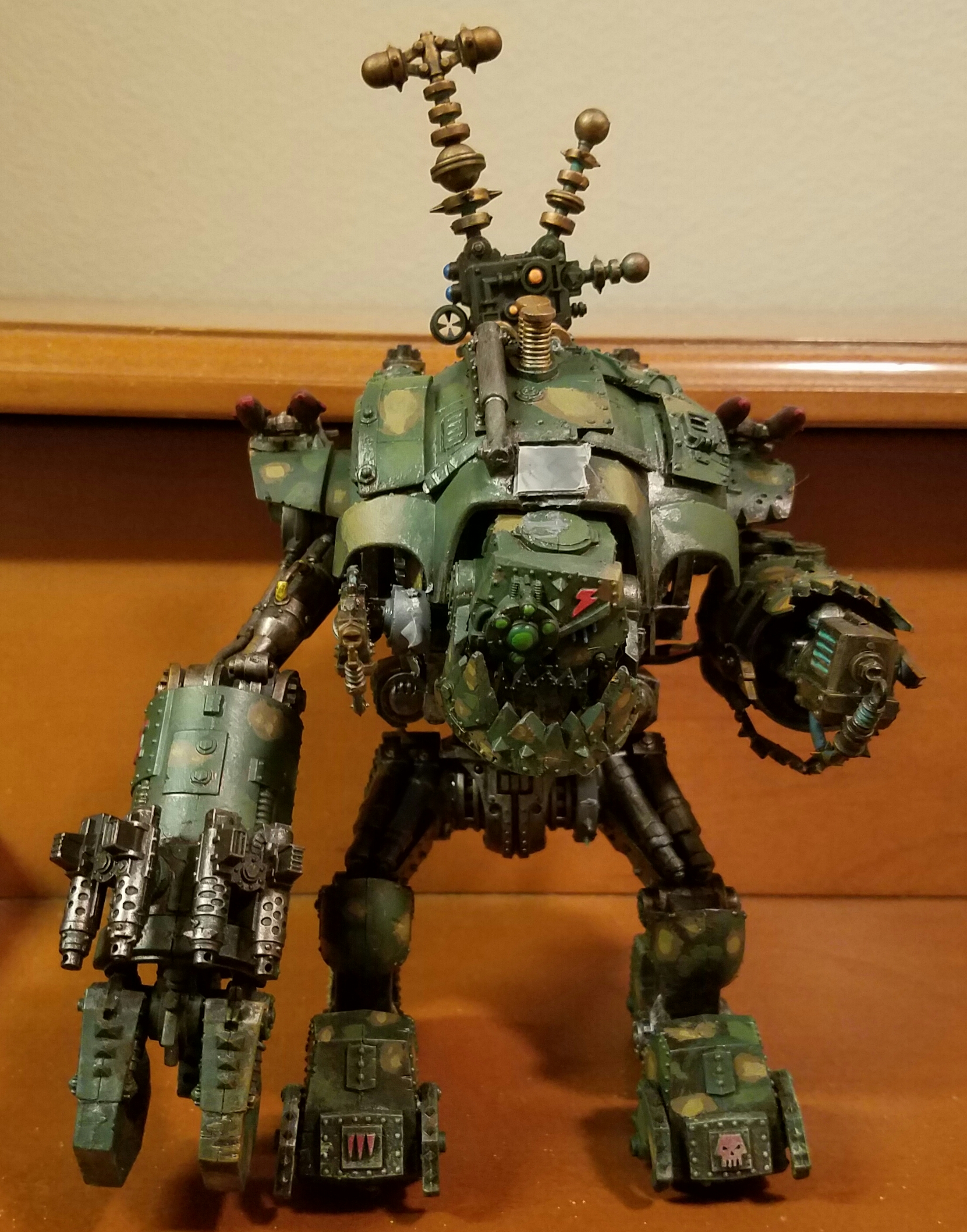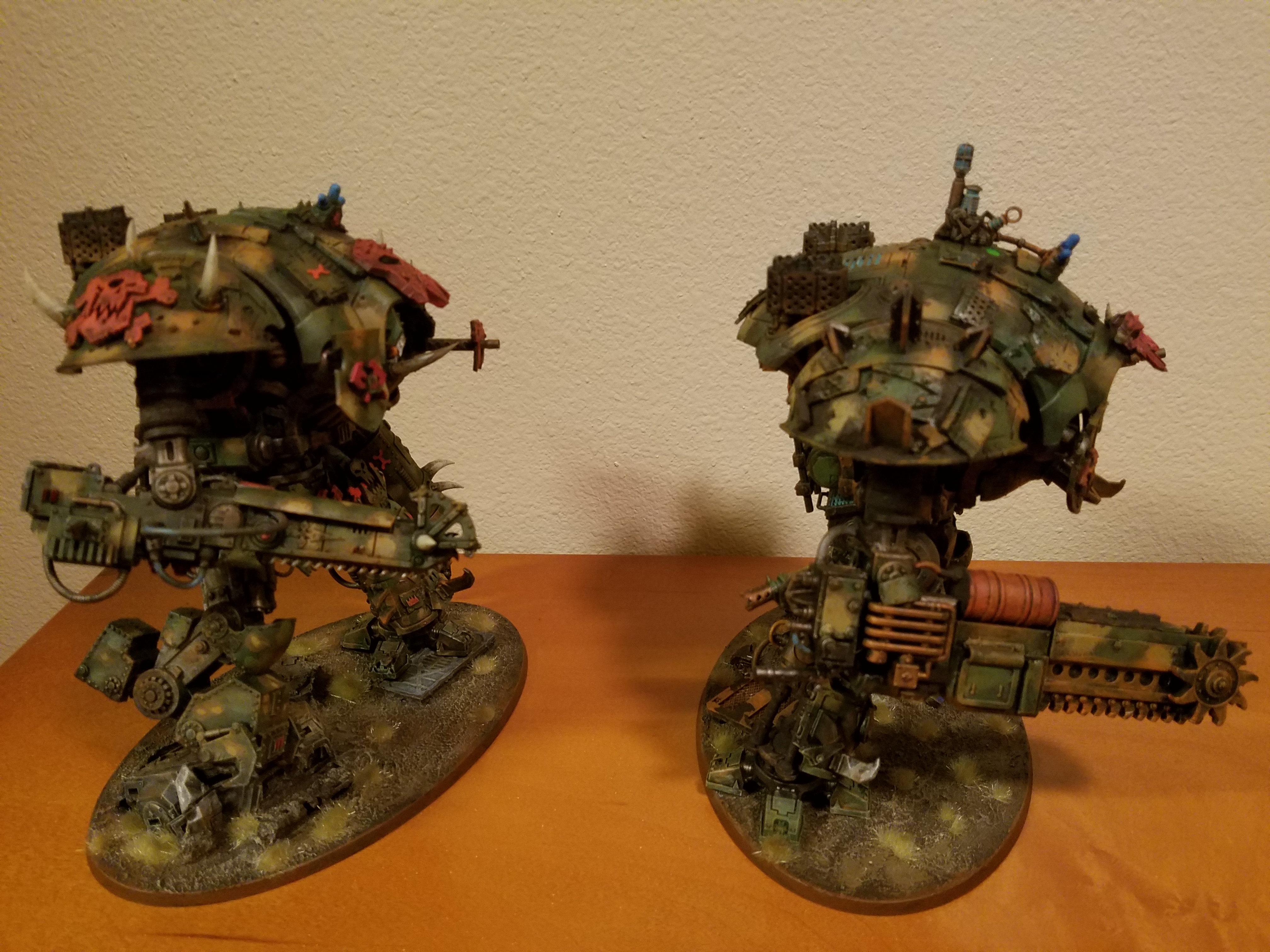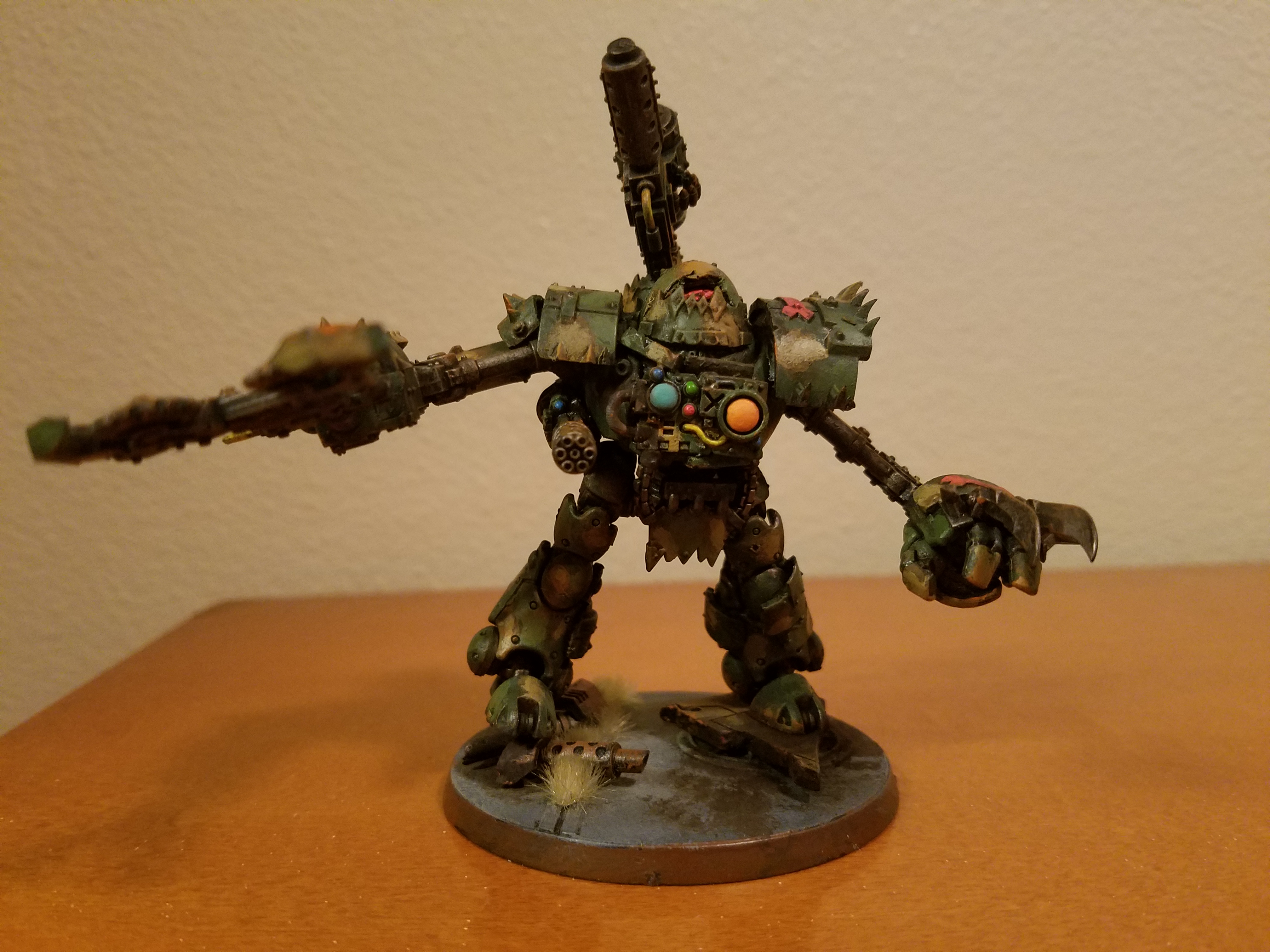 I've been practicing for wargames con lately. Here is a WIP of my looted Kastelan Deff Dread! Also Gitsplitta, I did get some Kataphron to convert and hopefully in time for wargames. I also am going to be working on a Morka Knight. Everything but the torso and joints will be from the Morka and the torso and joints will be from the Knight. Excited for bits to arrive!