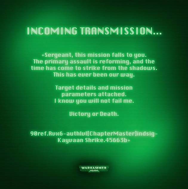 My assumption was that this was for a SM v. Tau Boxed set that was rumored to be coming out since the message was from Kavyaan Shrike and the RG were last seen fighting tau.