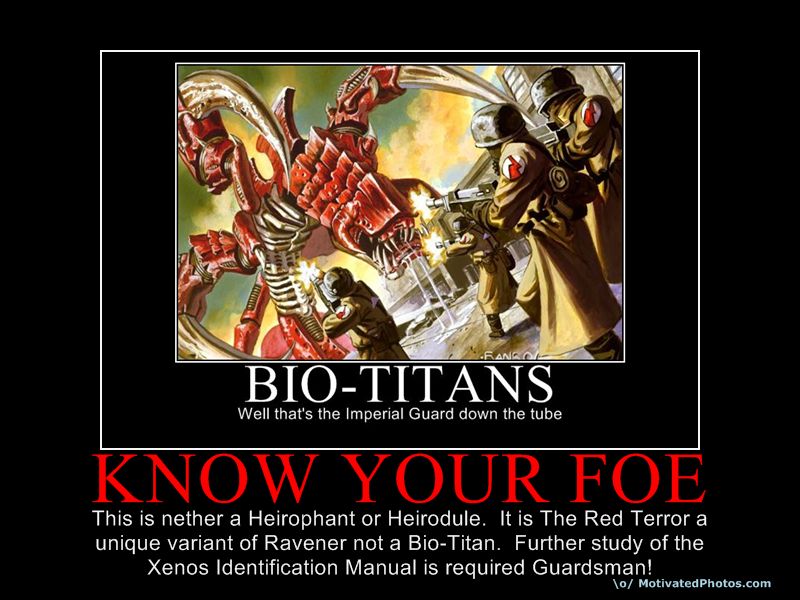RxGhost wrote:I think as far as that guardsman is concerned, the Red Terror IS a Bio-titan...have you seen his stats? Crazy cheap.