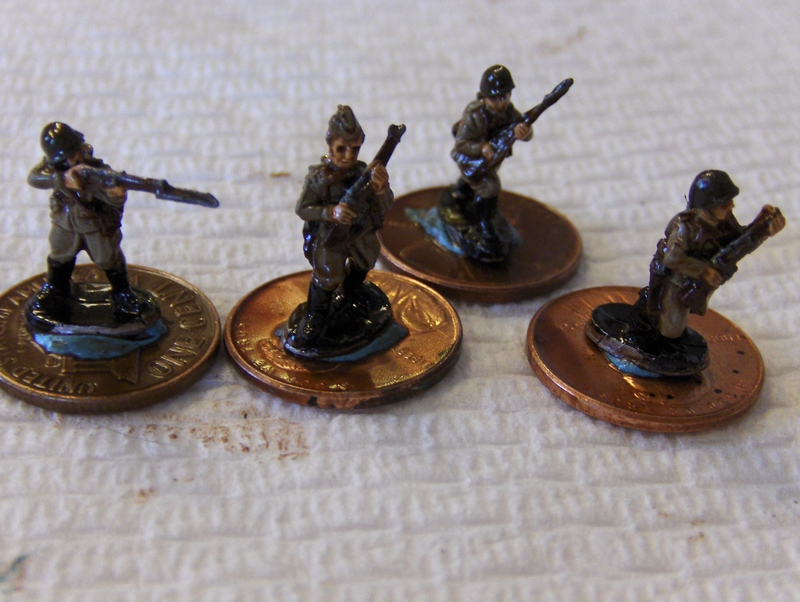 tac so I can pick them up by the penny without touching the mini before I varnish them.