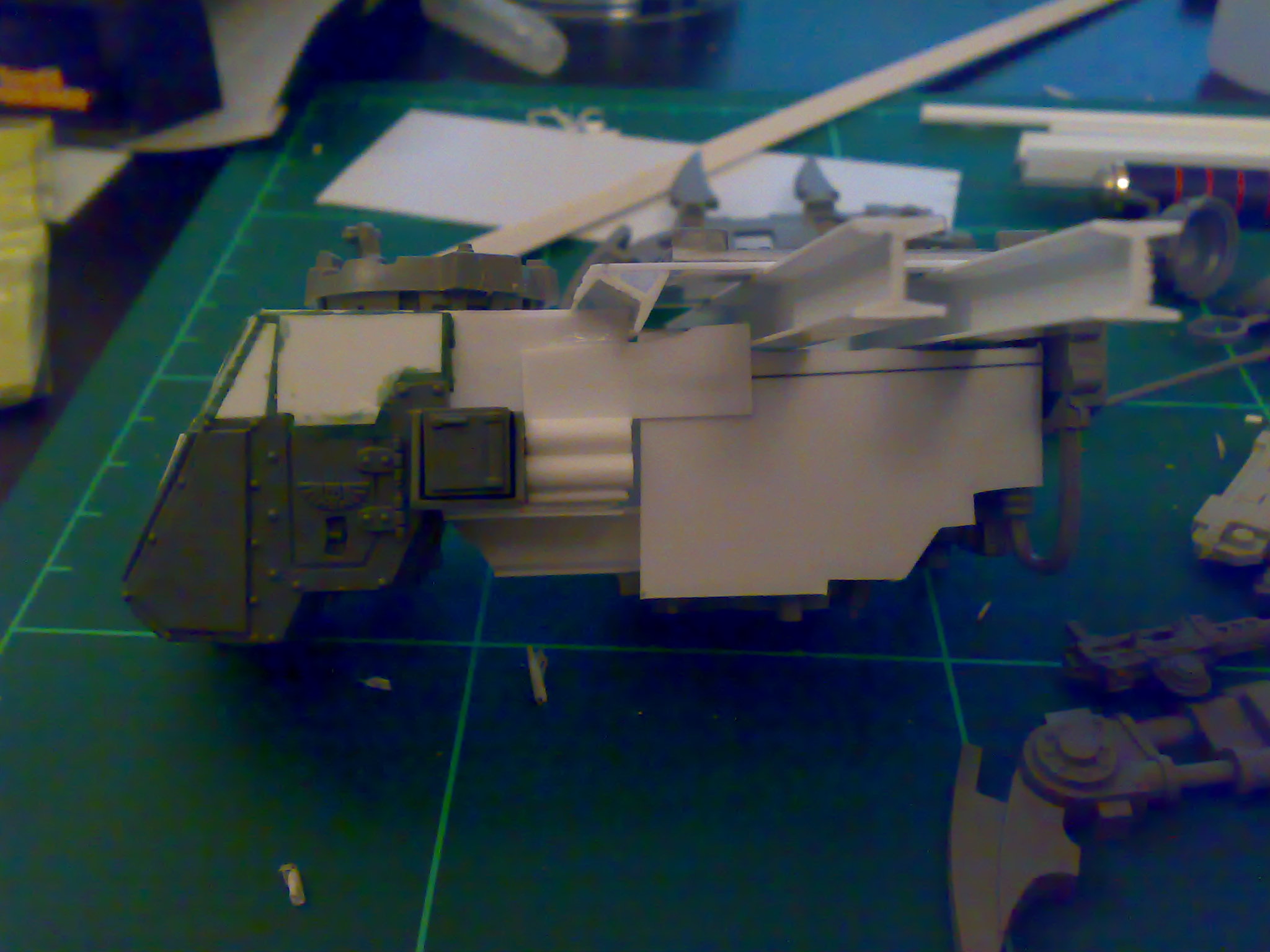 It´s made up of defiler legs, whirlwind parts, a FW whirlwind launcher, more FW stuff will be added, and yes, a sentinel body for the head.