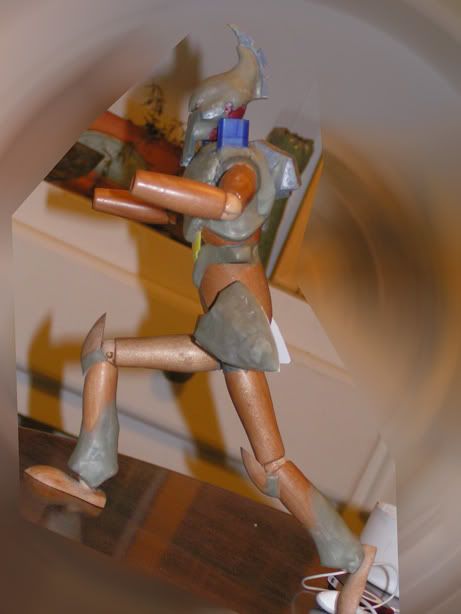 Begin with materials: I chose an artist's manikin as my base. they come in a foot tall, humanoid shape, and cost only 9 bucks, give or take. my local hobby shop had one, but their pretty easy to find. check art stores. add to the nine bucks the cost of one set of Apoxie Sculpt (suggested by the clerk. major props to him, I LOVE the stuff now) and you end up with about 21, 22 dollars total. Your going to need some plasticard, but I figured if your tackling a modeling project like this, you've probably got some already. any thickness will do, I only use it to box shapes out. grab your reference pics and lets do this shiz.