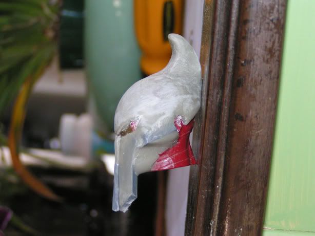 I just overlapped them and filled the gaps with putty. the shape works pretty well, but they'll have to have a final, third section to be as long as their supposed to be. I've pulled that goofy looking head off. lets do that next. if your doing this kinda thing yourself, getting the head built will give you a huge sigh of relief. that and the pulsars are the biggest problems I ran into
