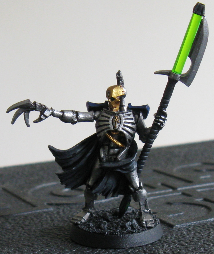 Also attached is my necron lord from a slightly different angle. You can see my whole (small) necron force in my army profile. The paint is a bit thick on the chest and head of the lord, but I painted it before I got a decent acrylic thinner.