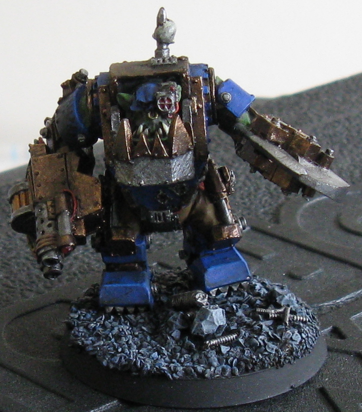 The exhaust piping on the back of the ork was where I tried out Vallejo Smoke for the first time. For those of you who have not used it, it is basically a greasy, thick substance which perfectly simulates the crap that you get accumulate around an exhaust and I can highly recommend it. The colour is a sort of brown/black/grey mix, a little like the new brown wash, but much much thicker and more fun to use.
